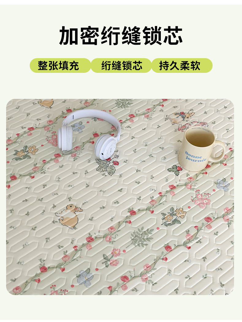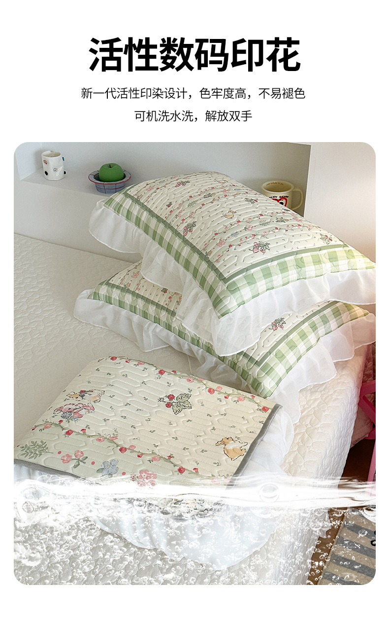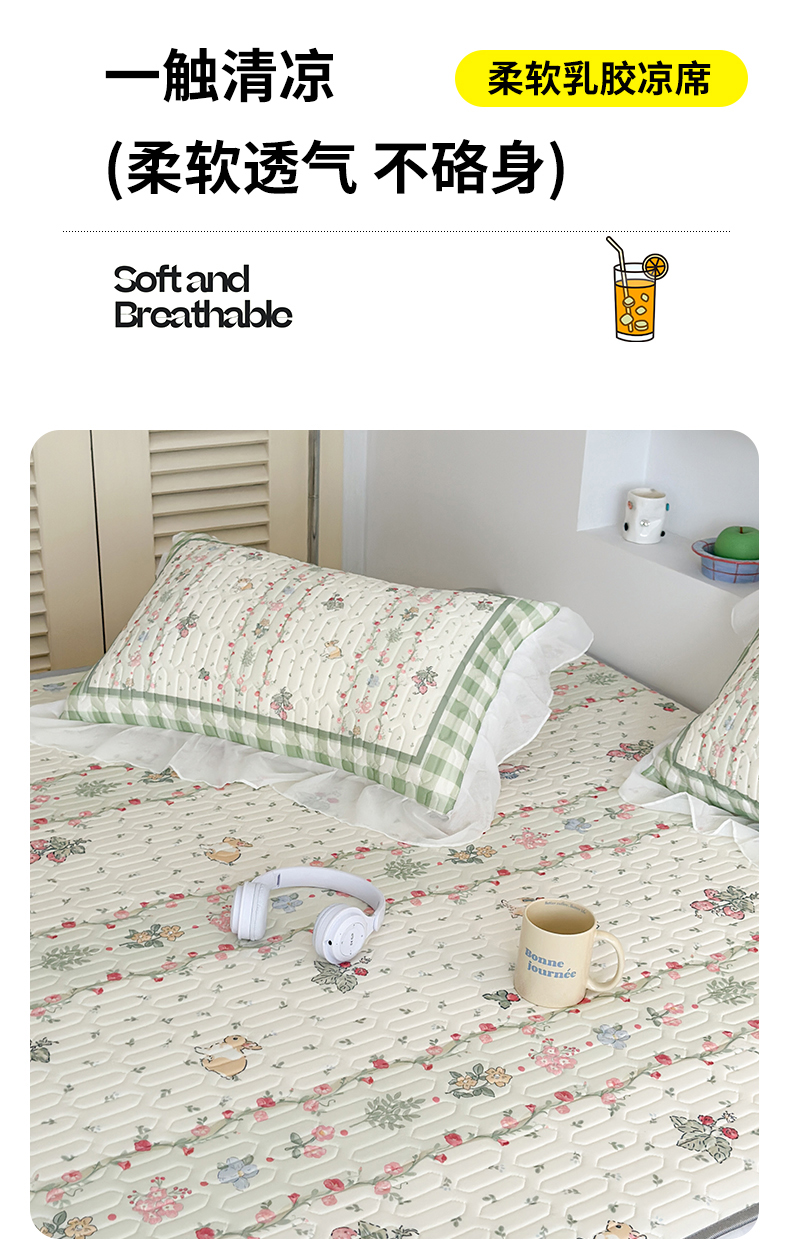 商品名称:昔可 新款床裙款乳胶凉席双层雪纺纱乳胶凉席三件套 草莓小兔