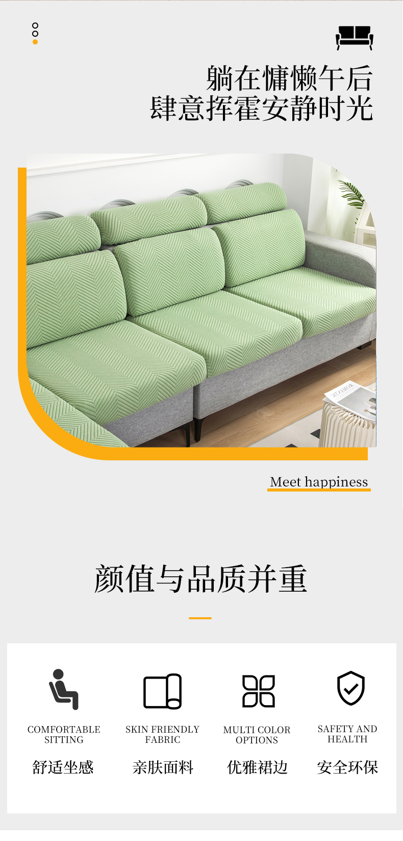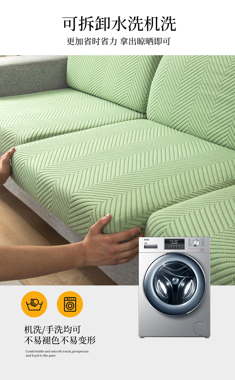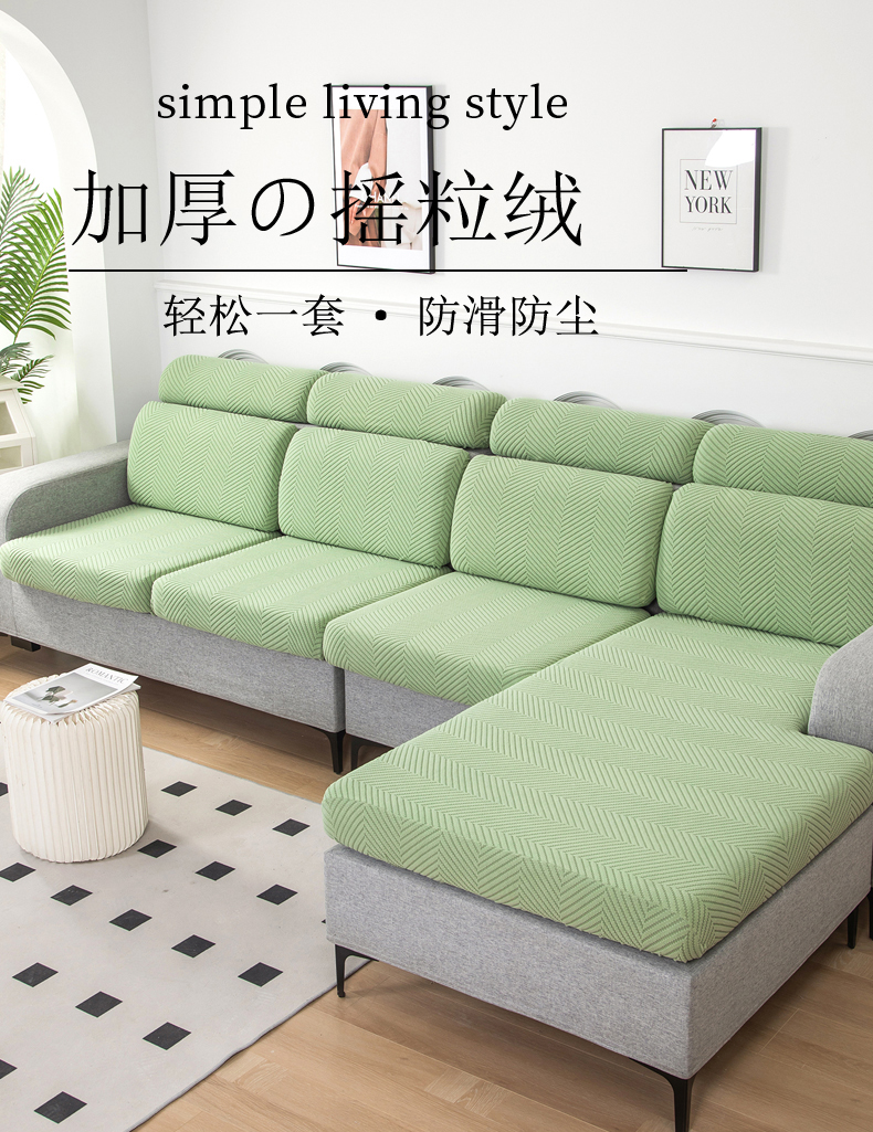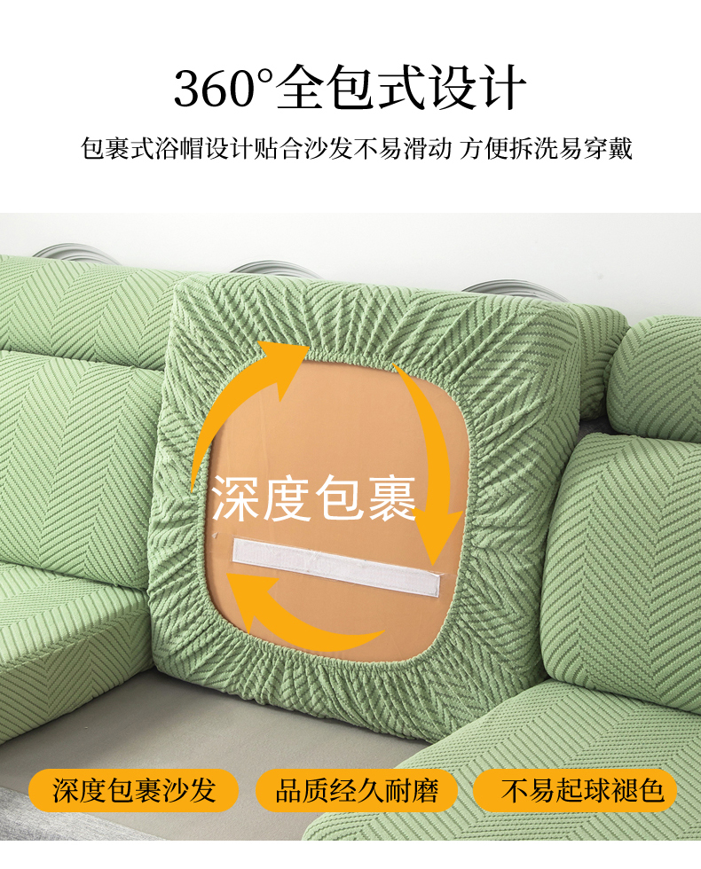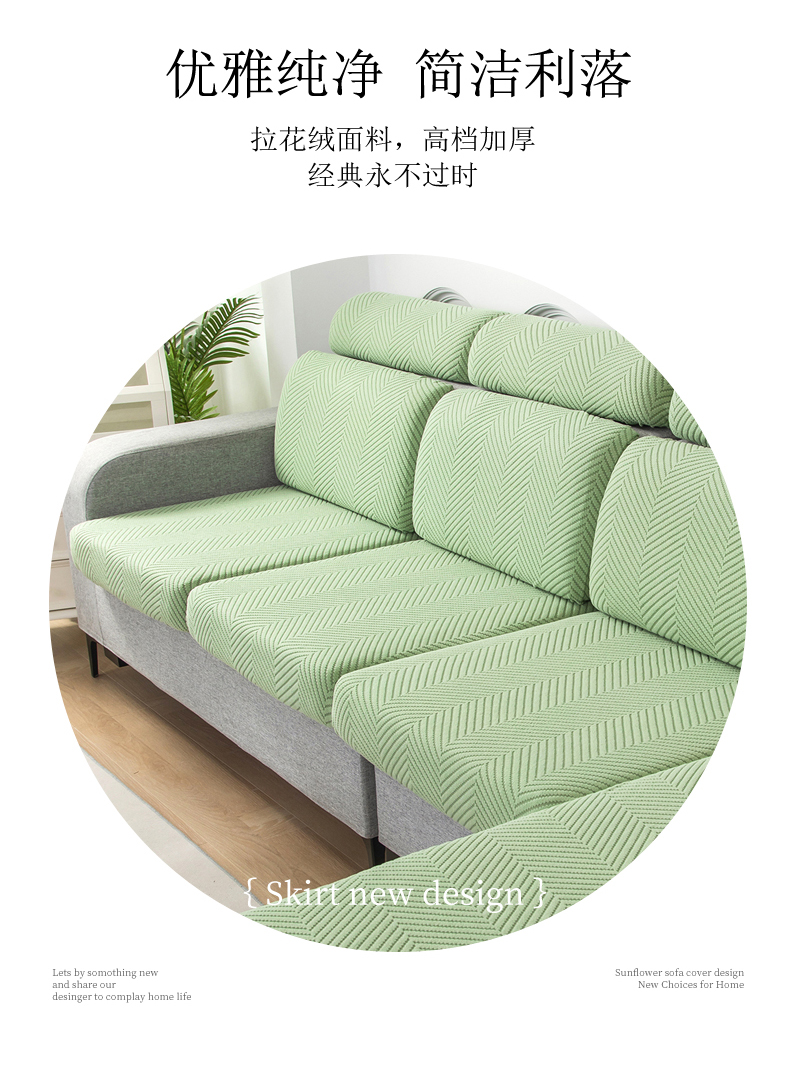 当前位置: 91家纺网 > 商品网购 > 居家布艺 > 坐垫/椅垫/沙发垫 > 沙发垫 > 千彤沙发垫 2024新款常规款拉花人字纹沙发套系列 浅绿