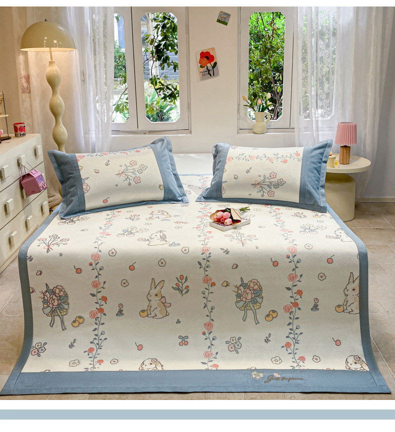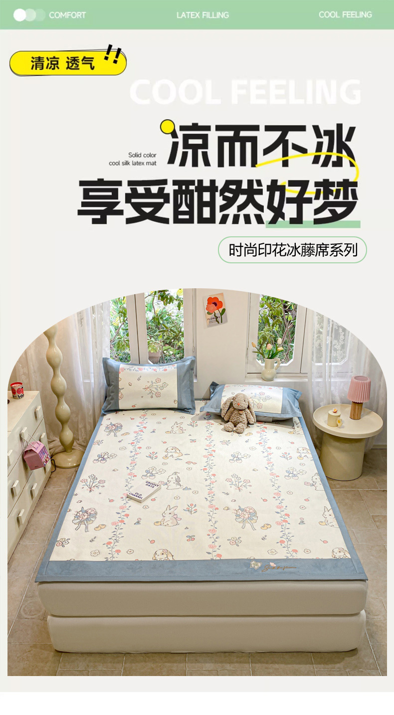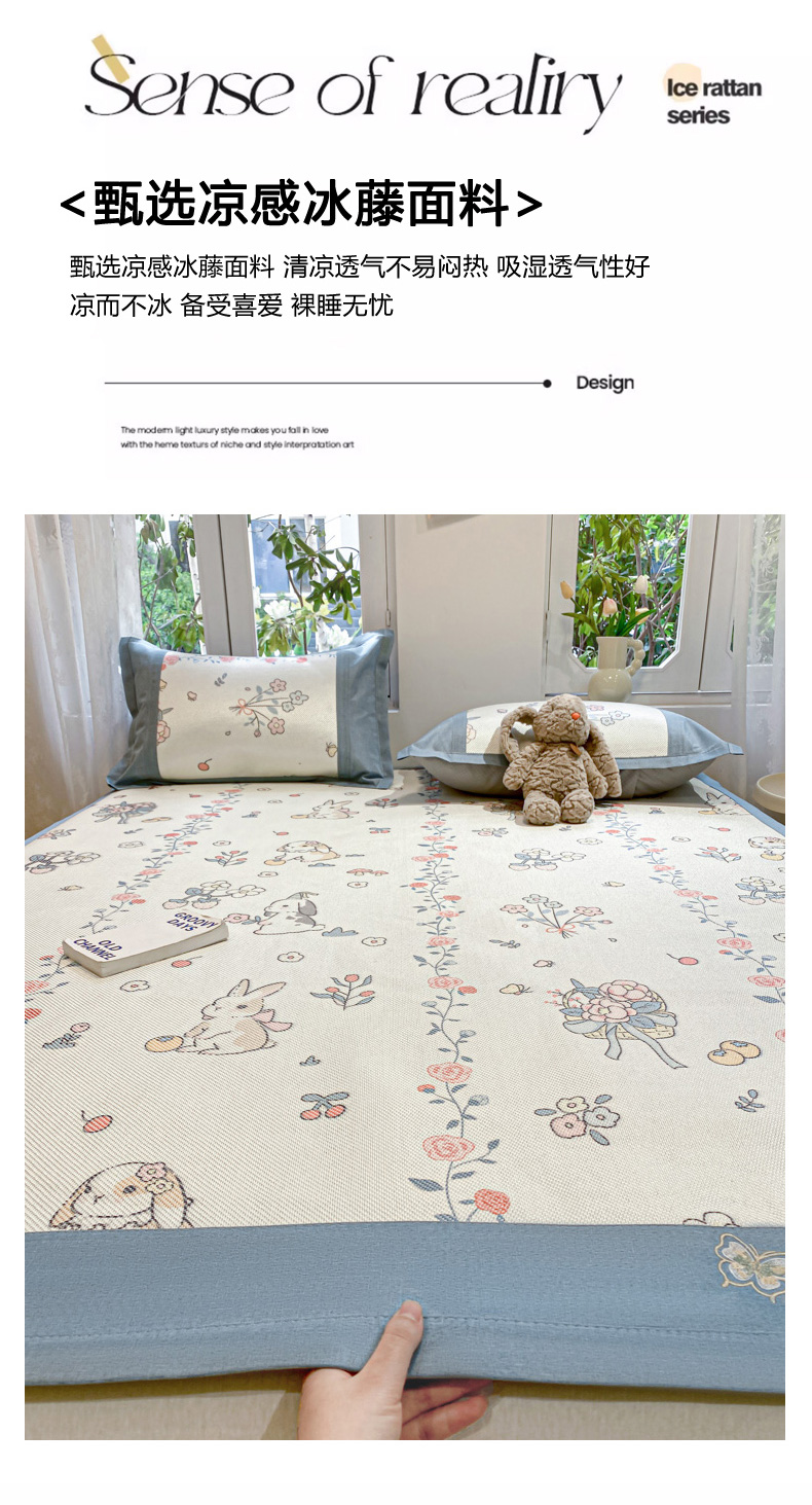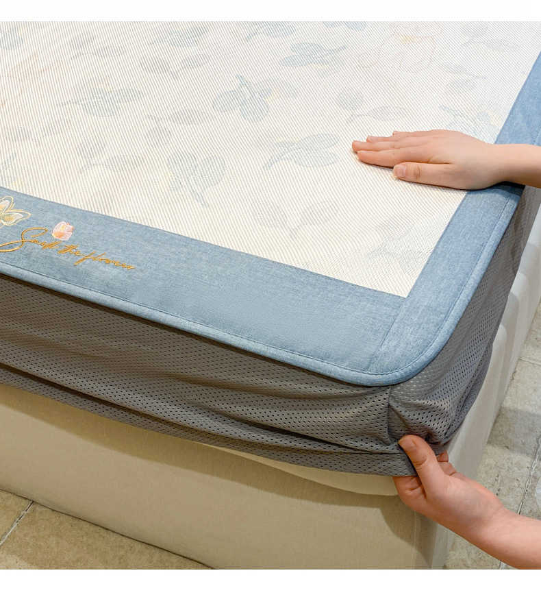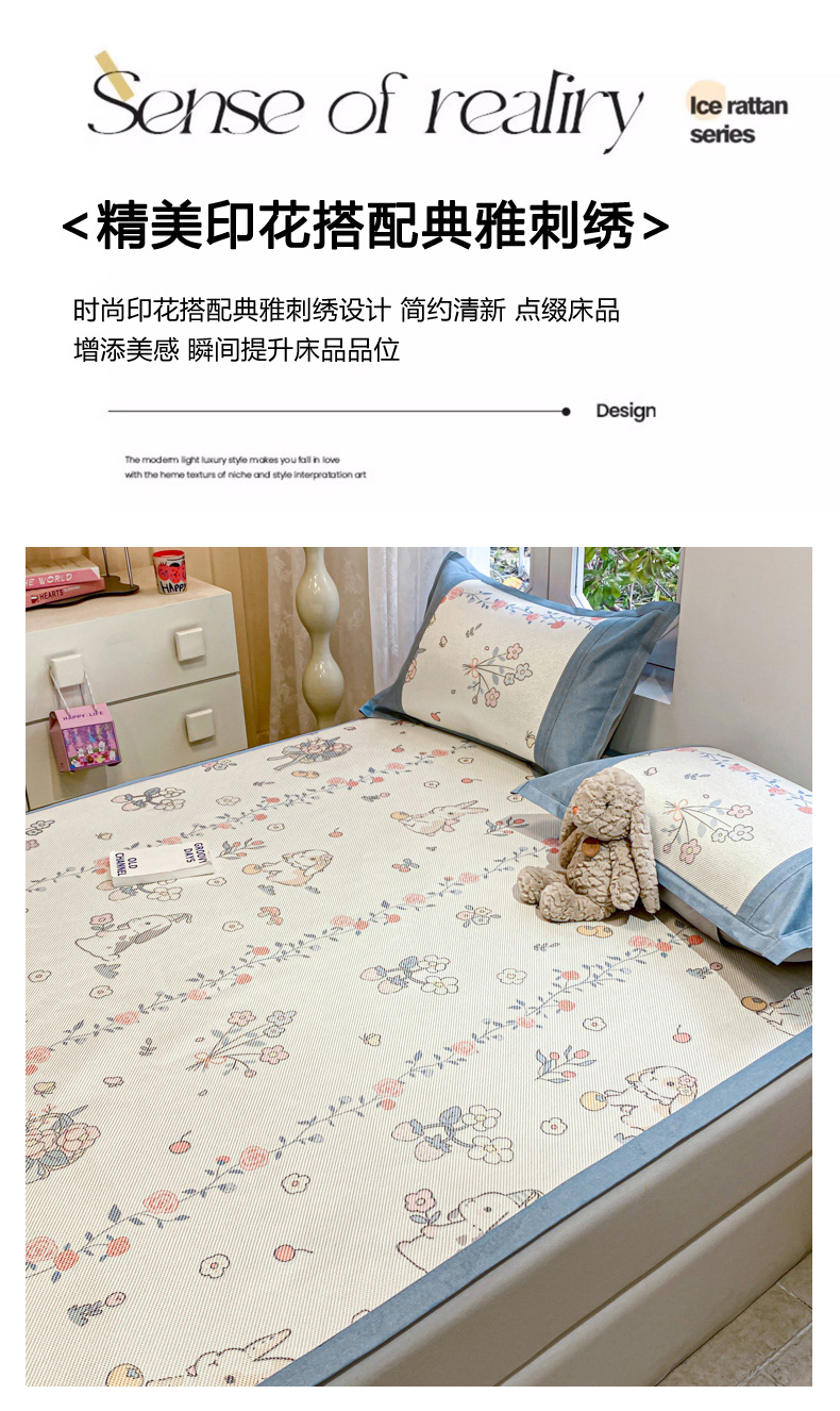 商品名称:慕澄2024新款A类时尚印花刺绣冰藤凉席 床笠款-家园