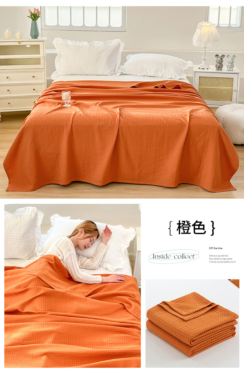 商品名称:乐家毛巾被(工厂自产自销) 2024新款全棉华夫格毛巾被 橙色