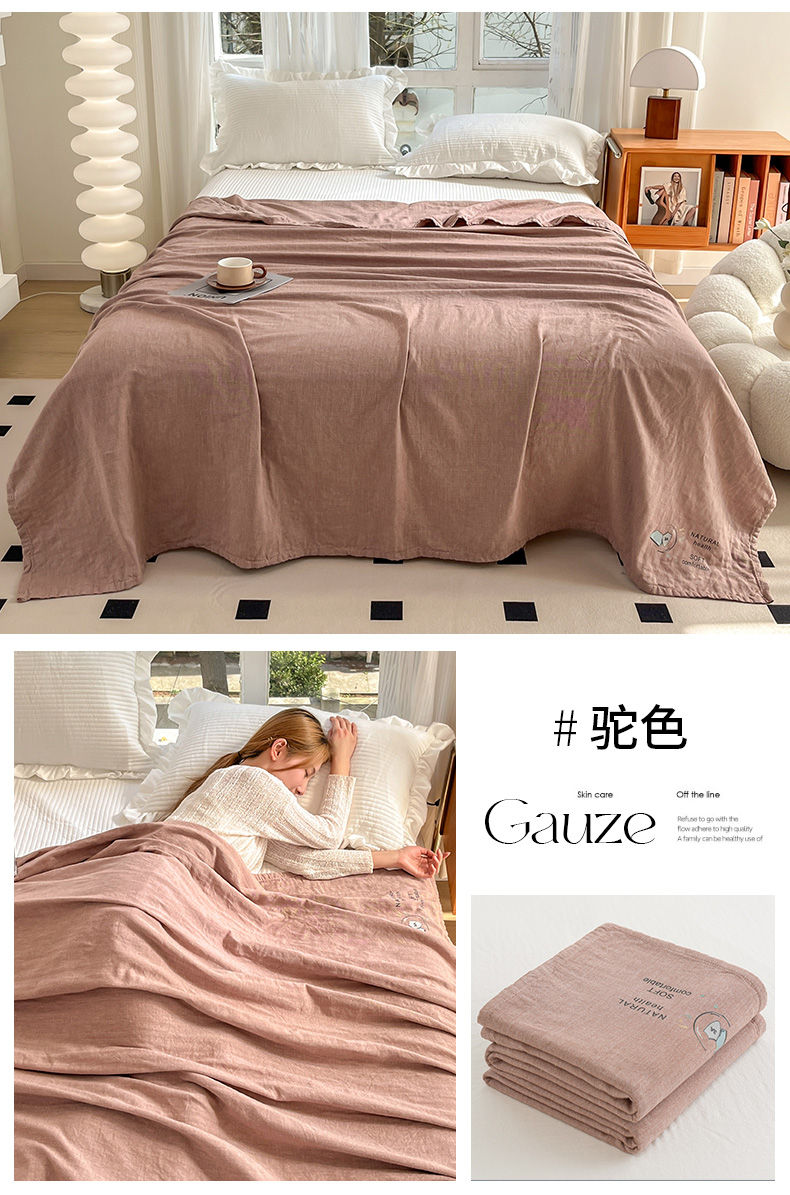 (总)乐家毛巾被(工厂自产自销) 2024新款全棉抗菌三层纱布毛巾被,棕色,浅灰色,蓝色,黄色,深粉色,驼色,浅粉色