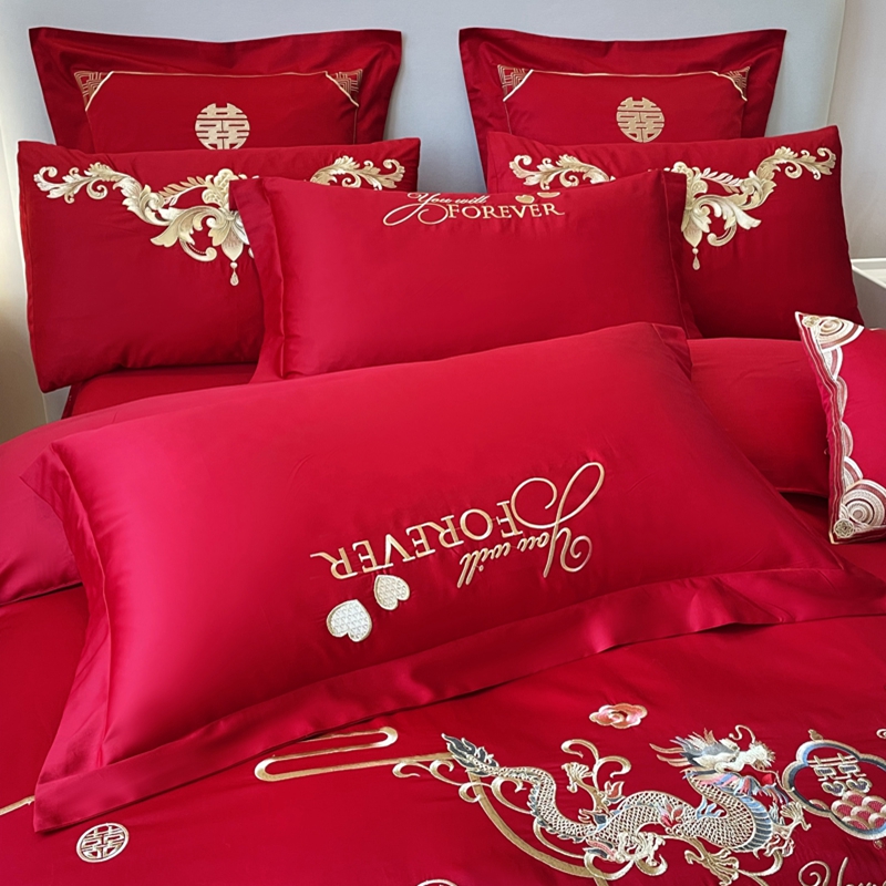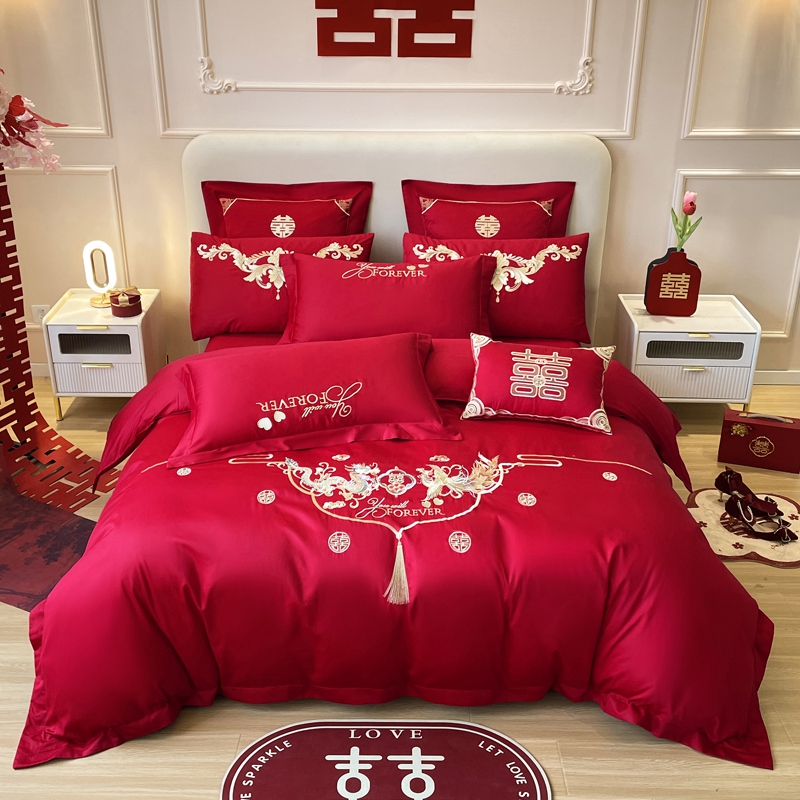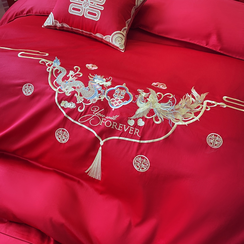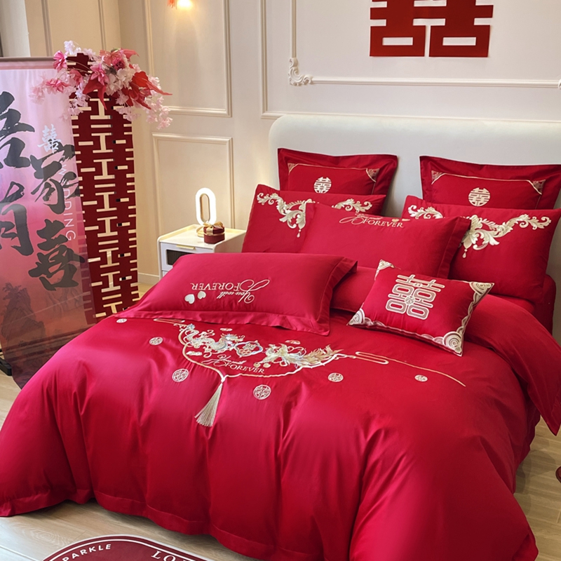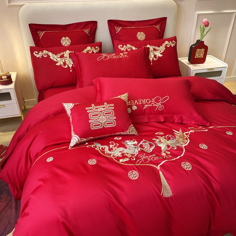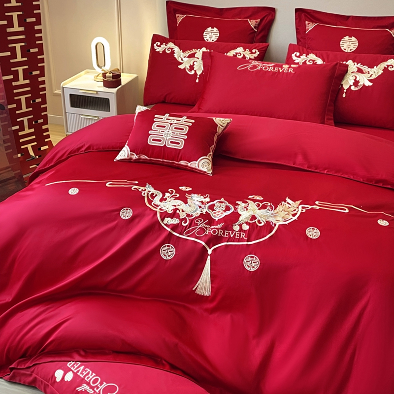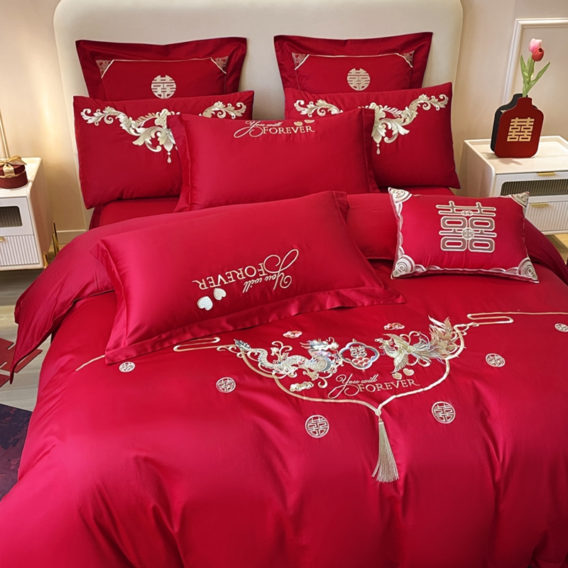 当前位置: 91家纺网 > 商品网购 > 床品套件 > 多件套 > 多件套 > 用心 2024新款全棉高端婚庆绣花四件套喜乐龙凤