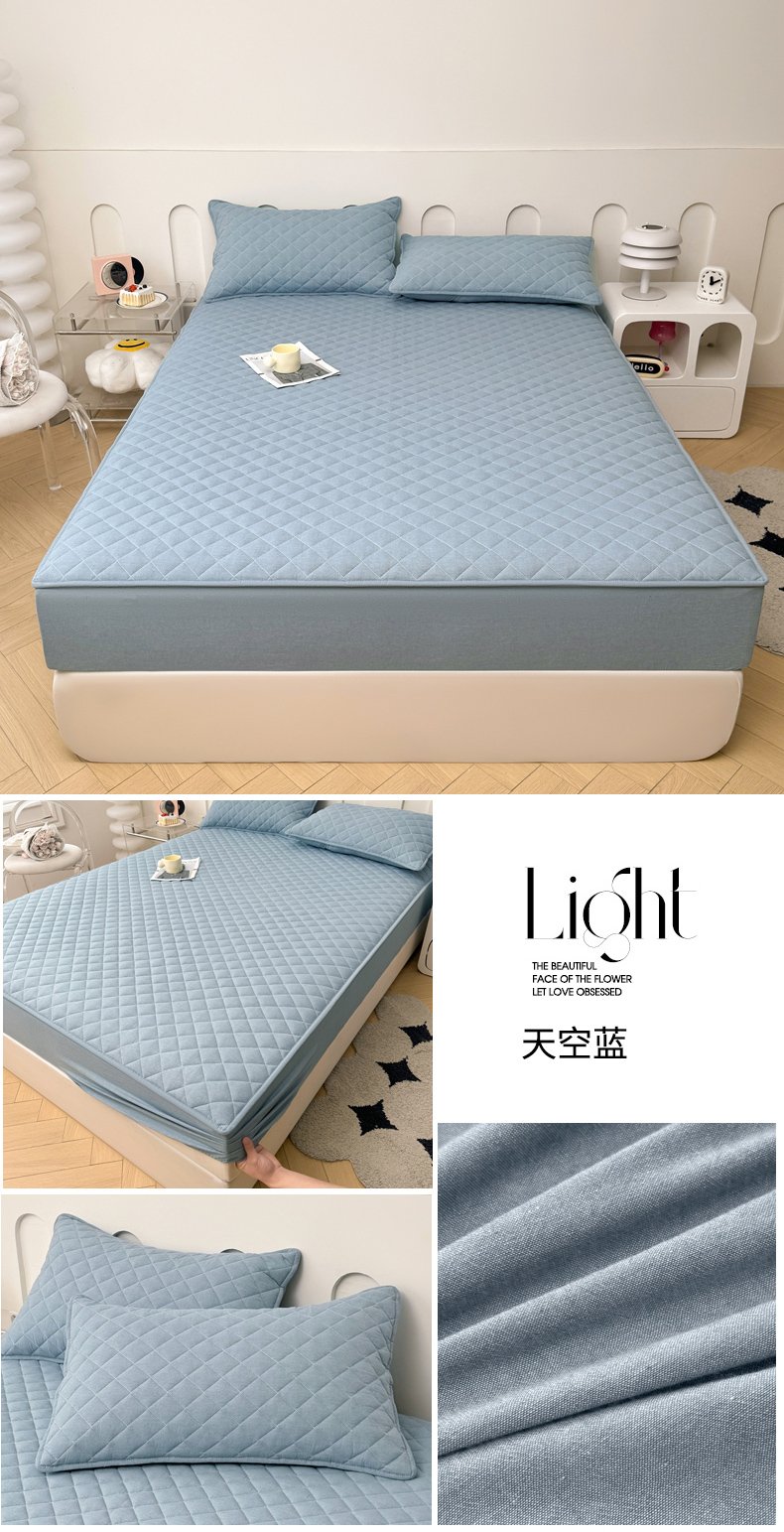 (总)糯米猪家纺 2023新款亲肤棉六面全包夹棉床笠--时尚格,水蓝,深蓝,灰色,白色,米色,粉玉