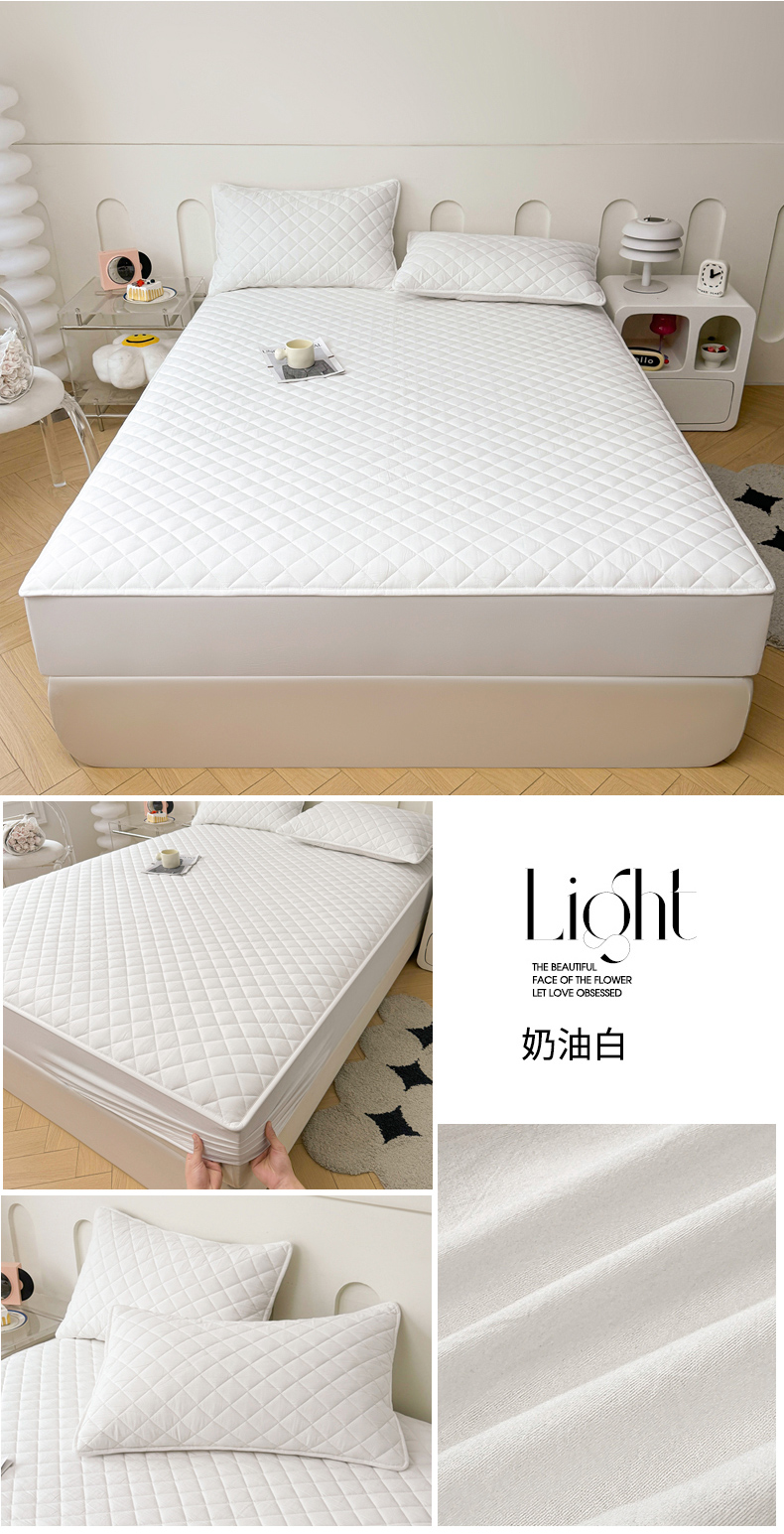 (总)糯米猪家纺 2025春夏新款亲肤棉六面全包防水压花床笠单件单床笠,组合图仅供展示,典雅白,高级灰,静谧绿,浅卡其,水雾蓝,樱花粉