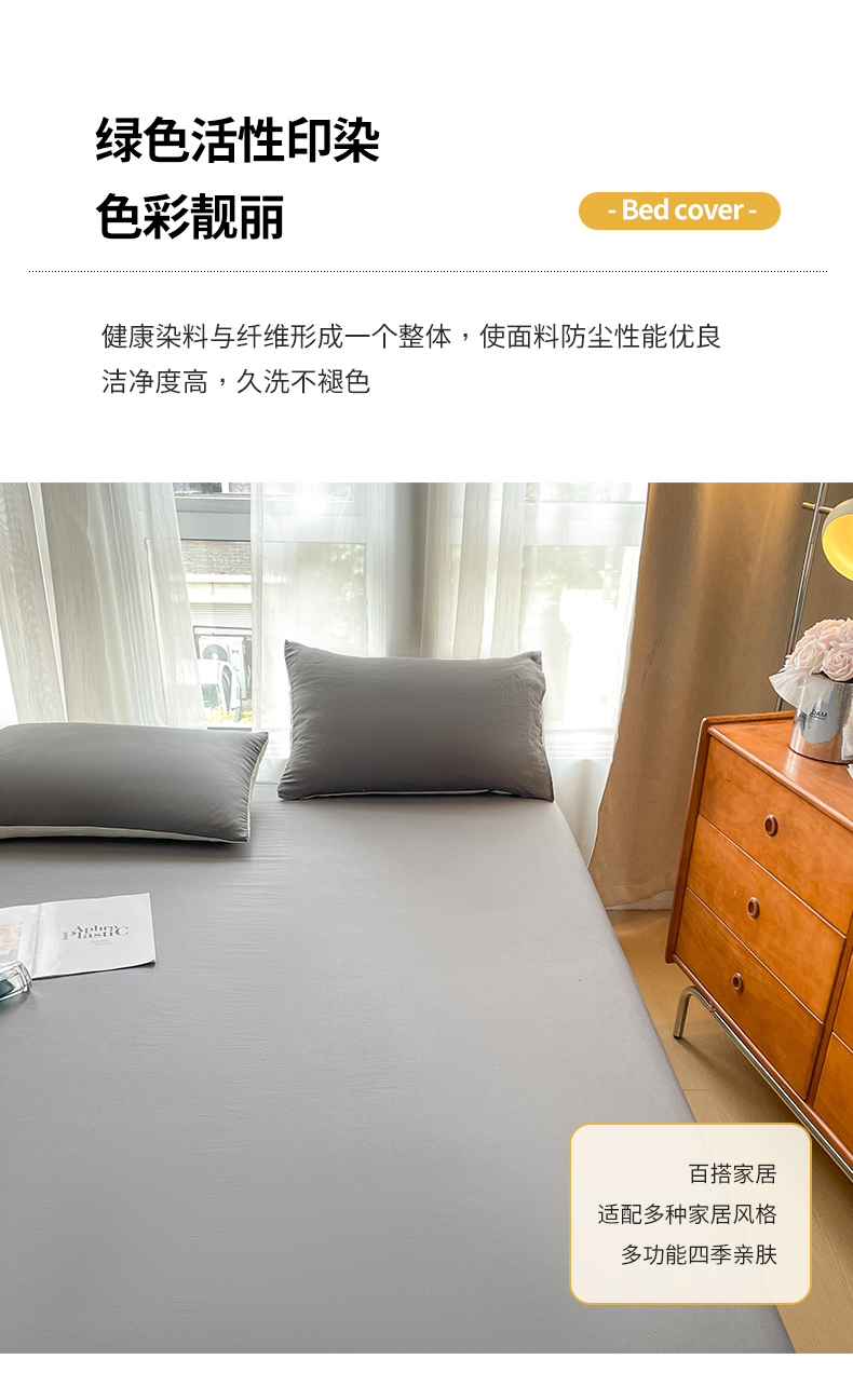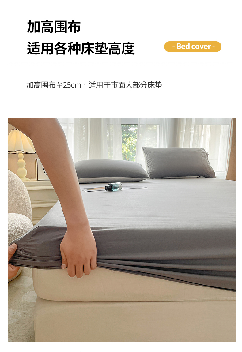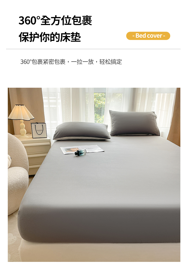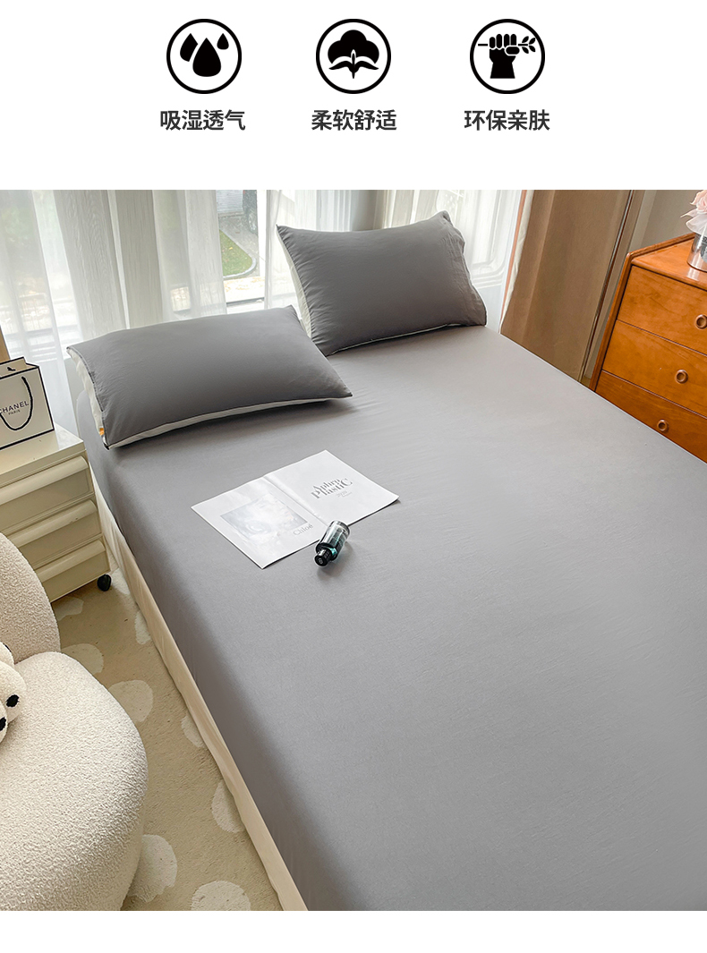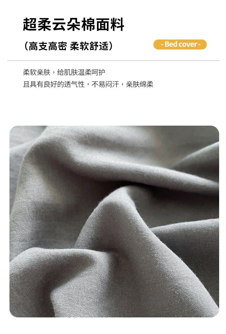宏源家纺 2024新款超柔水洗云朵棉床笠 灰