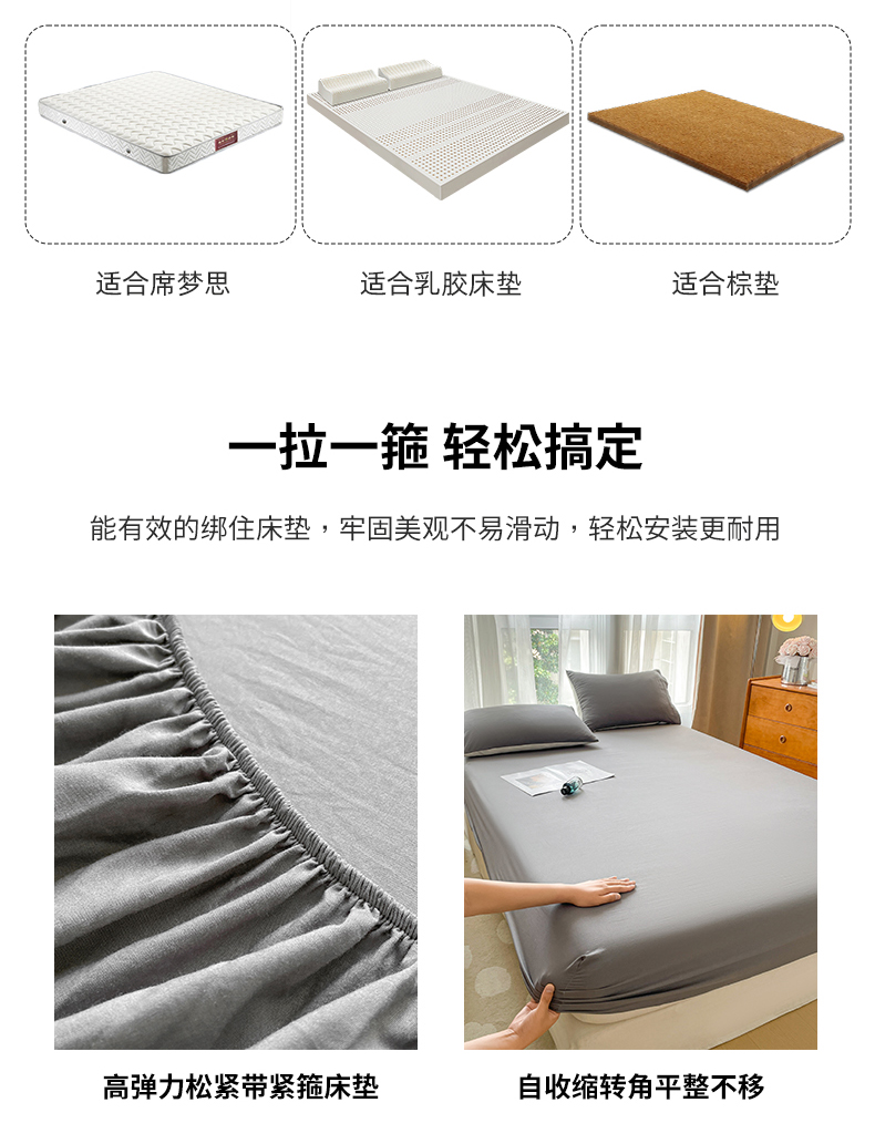商品名称:宏源家纺 2024新款超柔水洗云朵棉床笠 灰