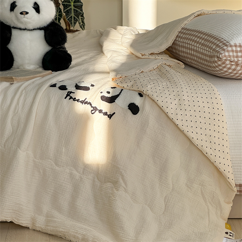 洋铭区 2024新花型皱皱纱毛巾绣夏被 熊猫圆圆