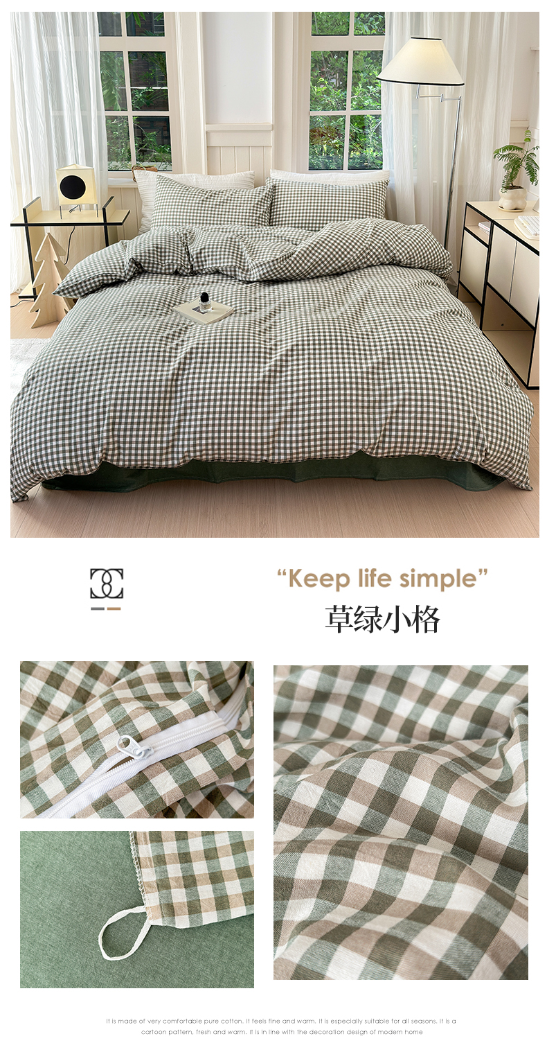 商品名称:北欧良品 2024新款A类全棉色织水洗棉单被套 草绿小格