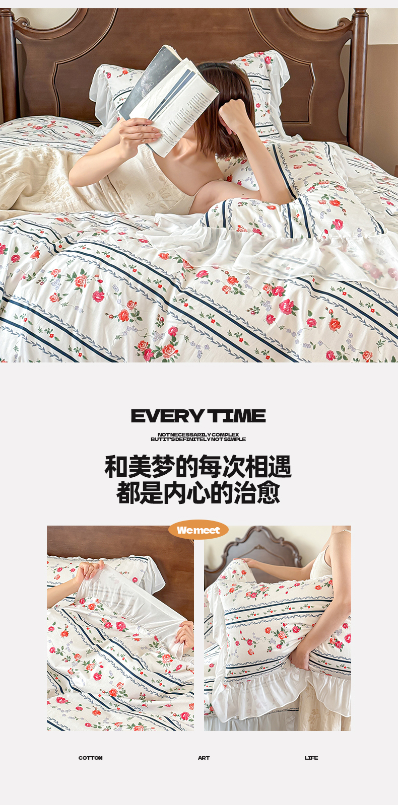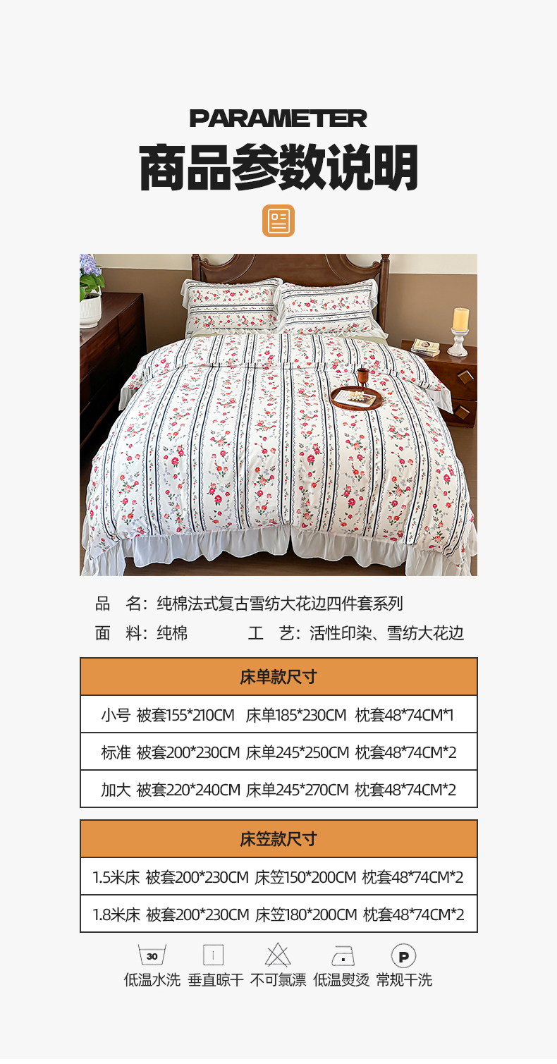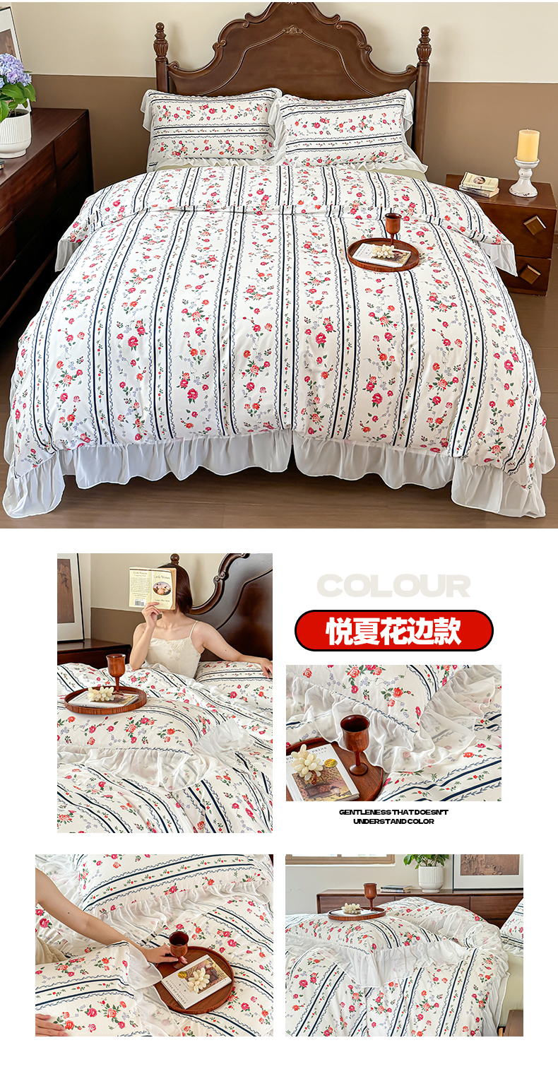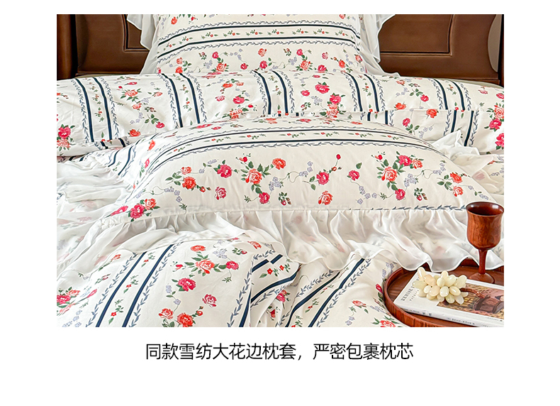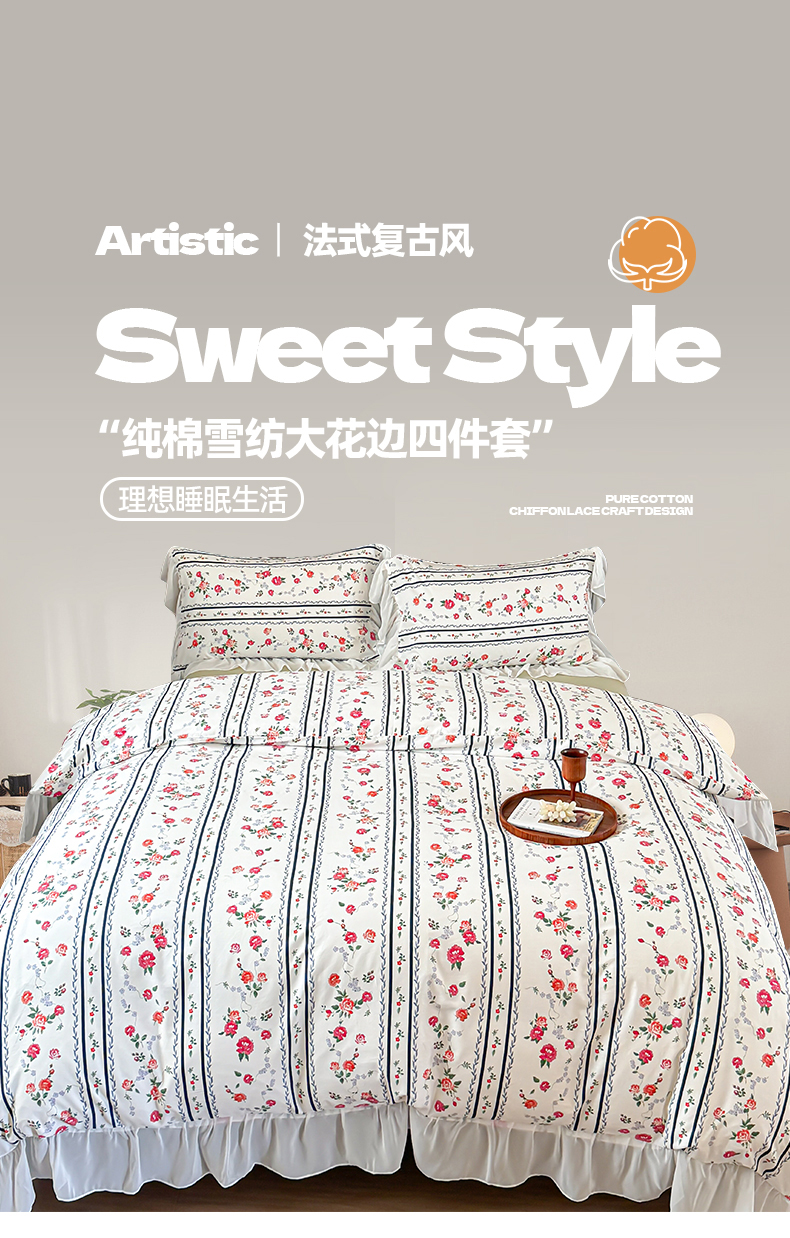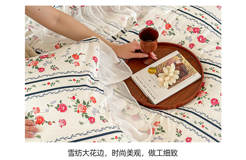 商品名称:窝米 2024夏季纯棉法式复古雪纺大花边四件套系列第二批 悦夏花边款