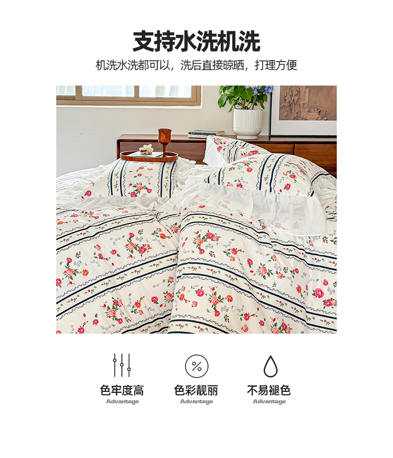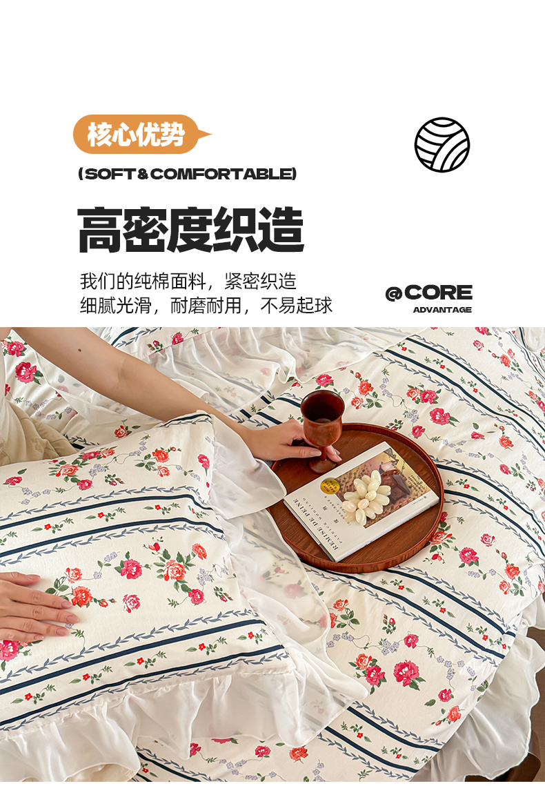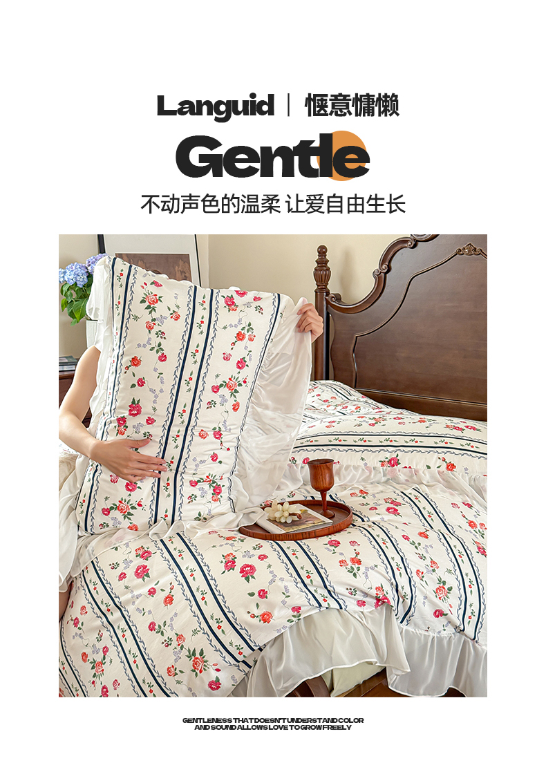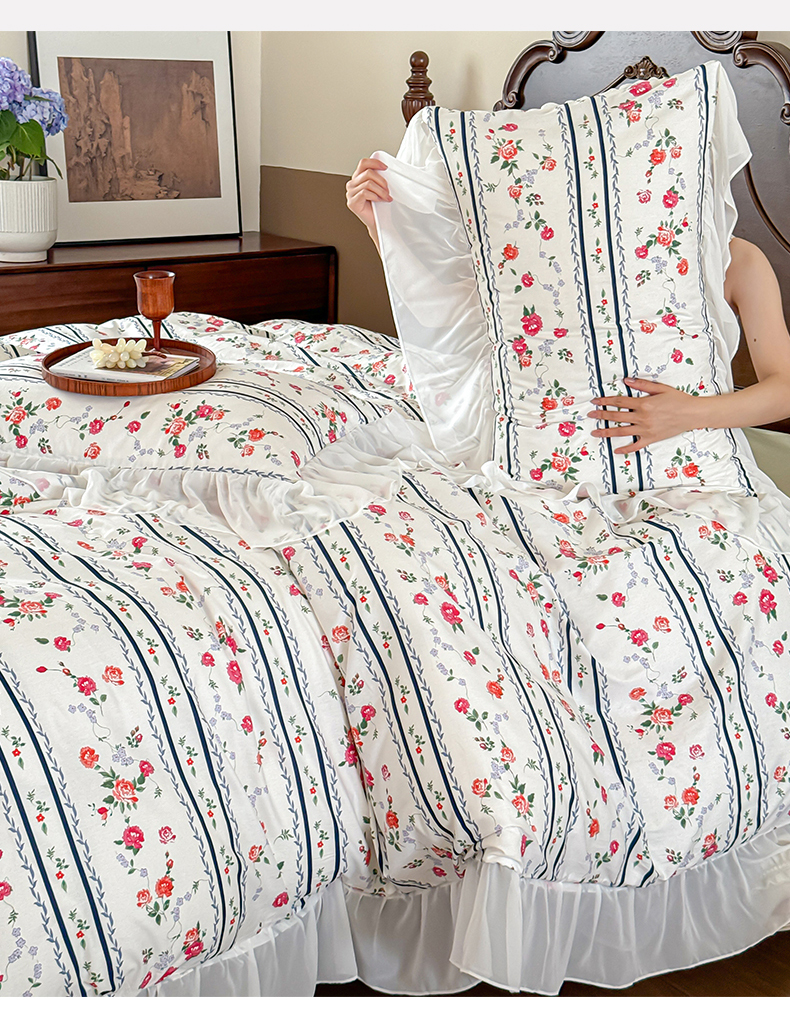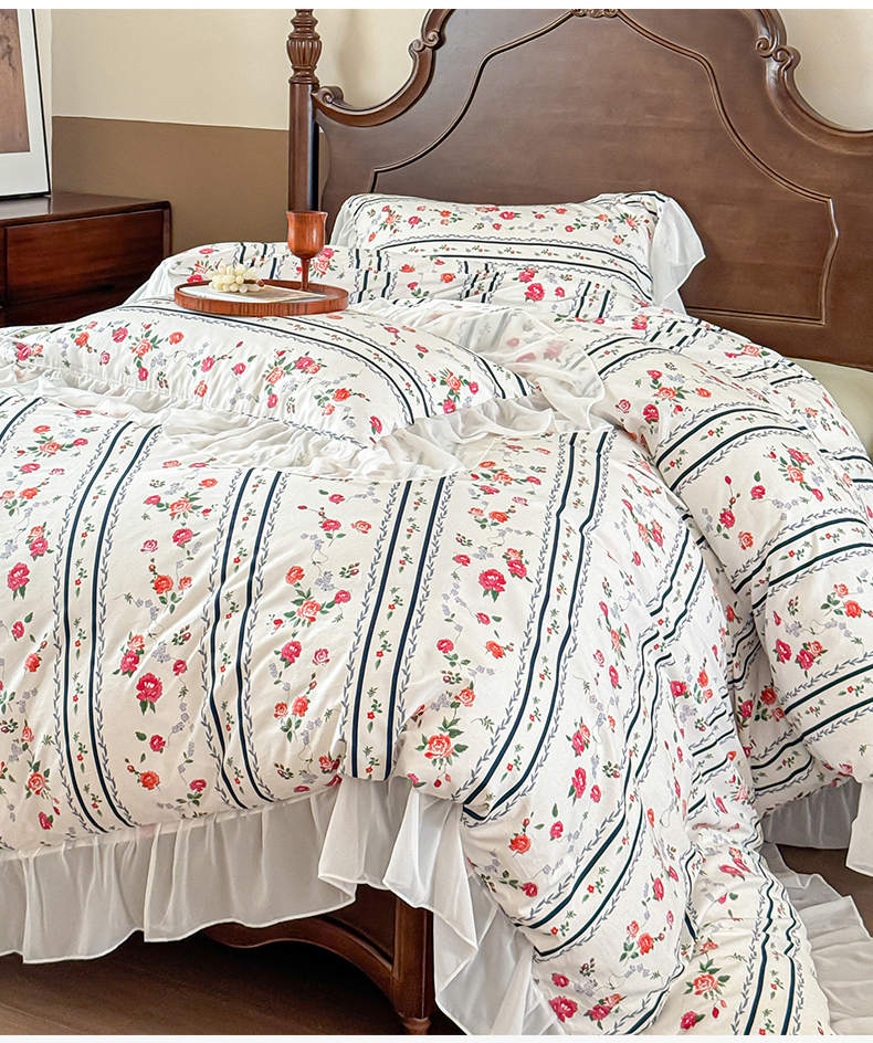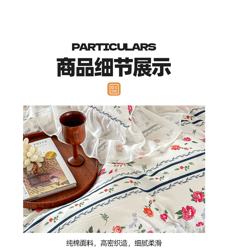 商品名称:窝米 2024夏季纯棉法式复古雪纺大花边四件套系列第二批 悦夏花边款