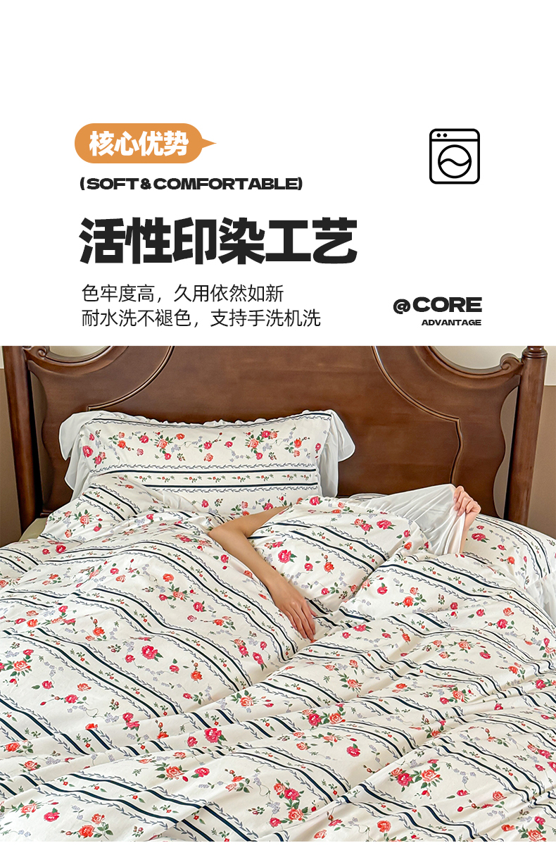 窝米 2020春夏新品全棉13372四件套小波西风系列小花花,小花花