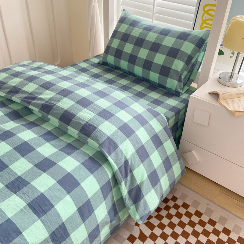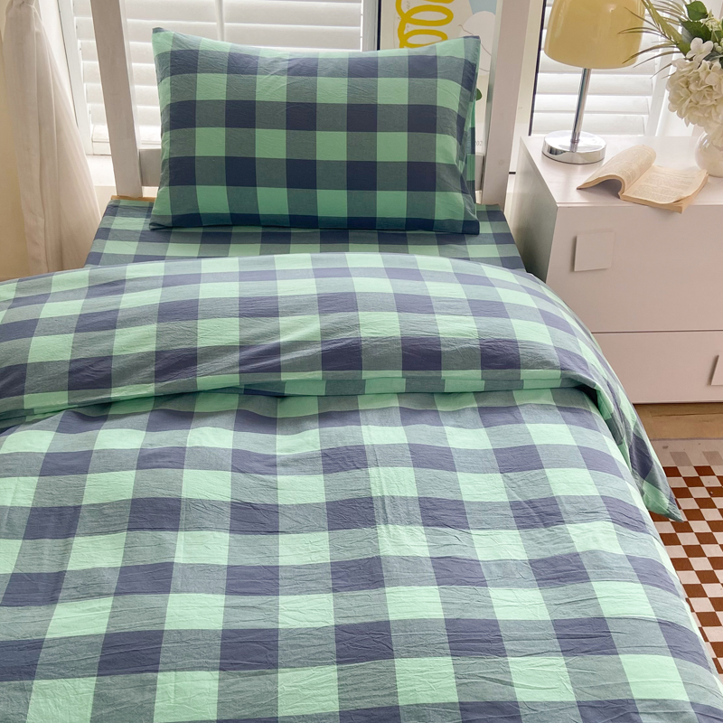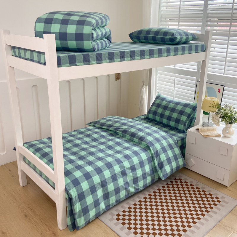 当前位置: 91家纺网 > 商品网购 > 床品套件 > 三件套 > 巧格家纺 2025新款A类全棉色织水洗棉宿舍三件套-床单款 绿中格