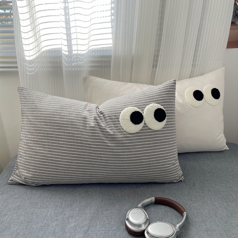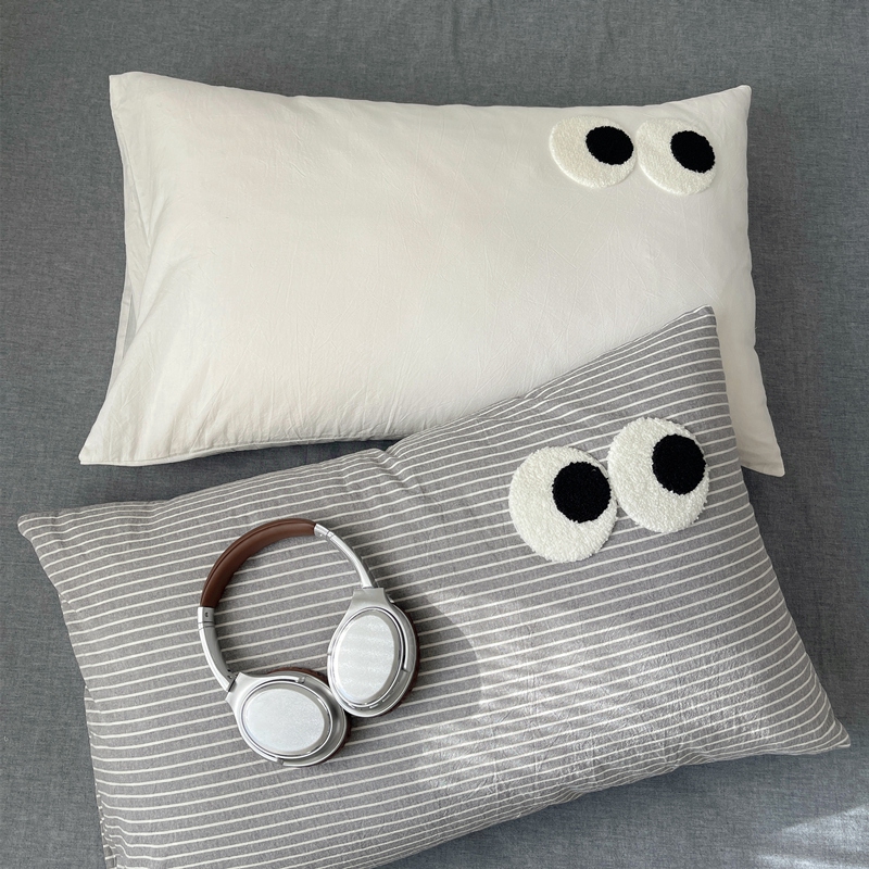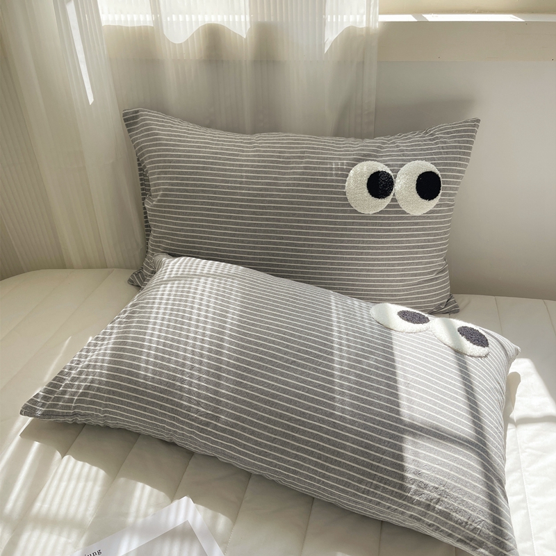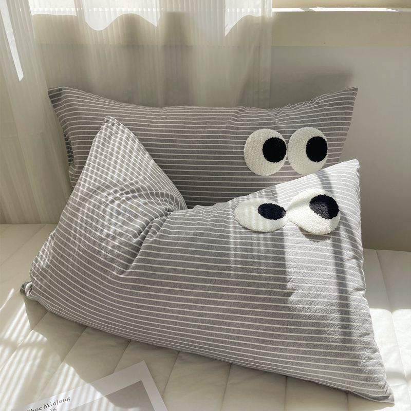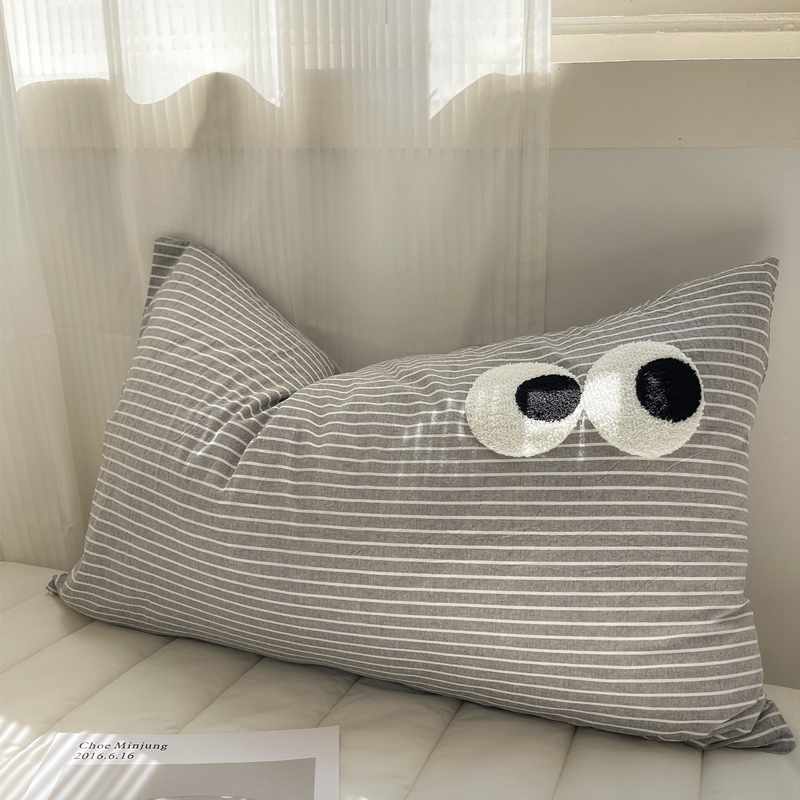 丽涵家纺 2024新款色织水洗棉大眼毛巾绣-单品枕套 大眼中黑条