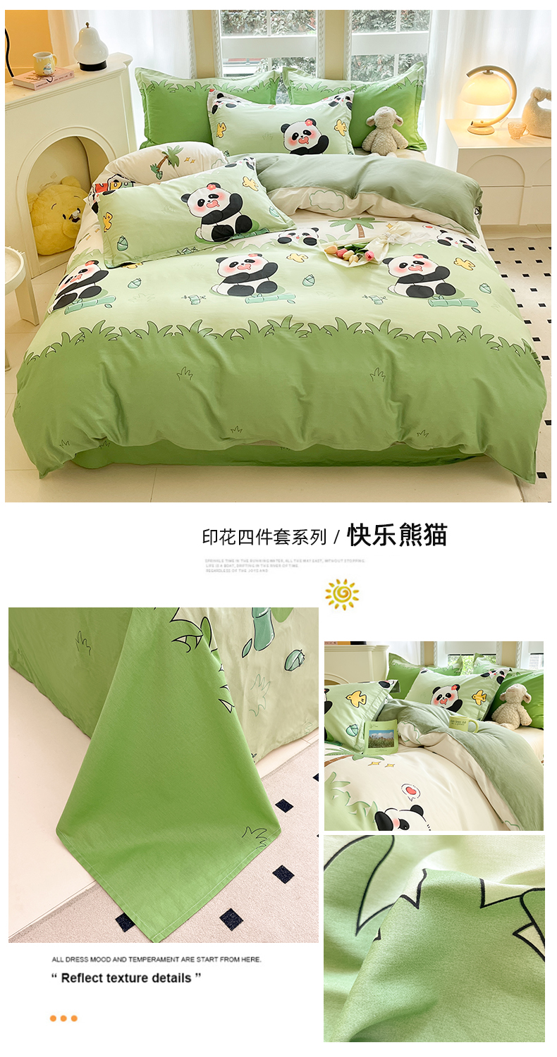 当前位置: 91家纺网 > 商品网购 > 床品套件 > 四件套 > 全棉普通四件套 > 铭成家纺 2024新款新疆棉喷气印花小清新系列四件套快乐熊猫