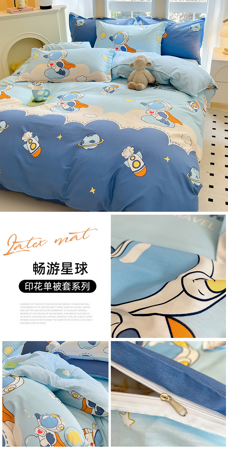 商品名称:铭成家纺 2024新款新疆棉喷气印花小清新系列单被套畅游星球