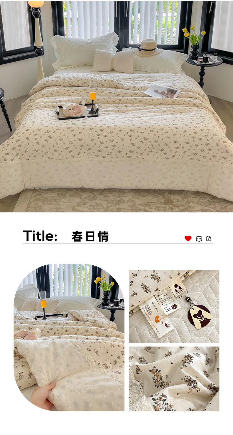 商品名称:奈萝家纺 2024新款法式花边款针织夏被春秋被可机洗 春日情
