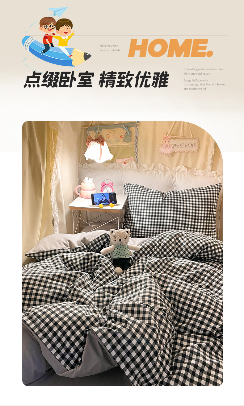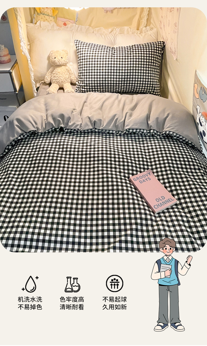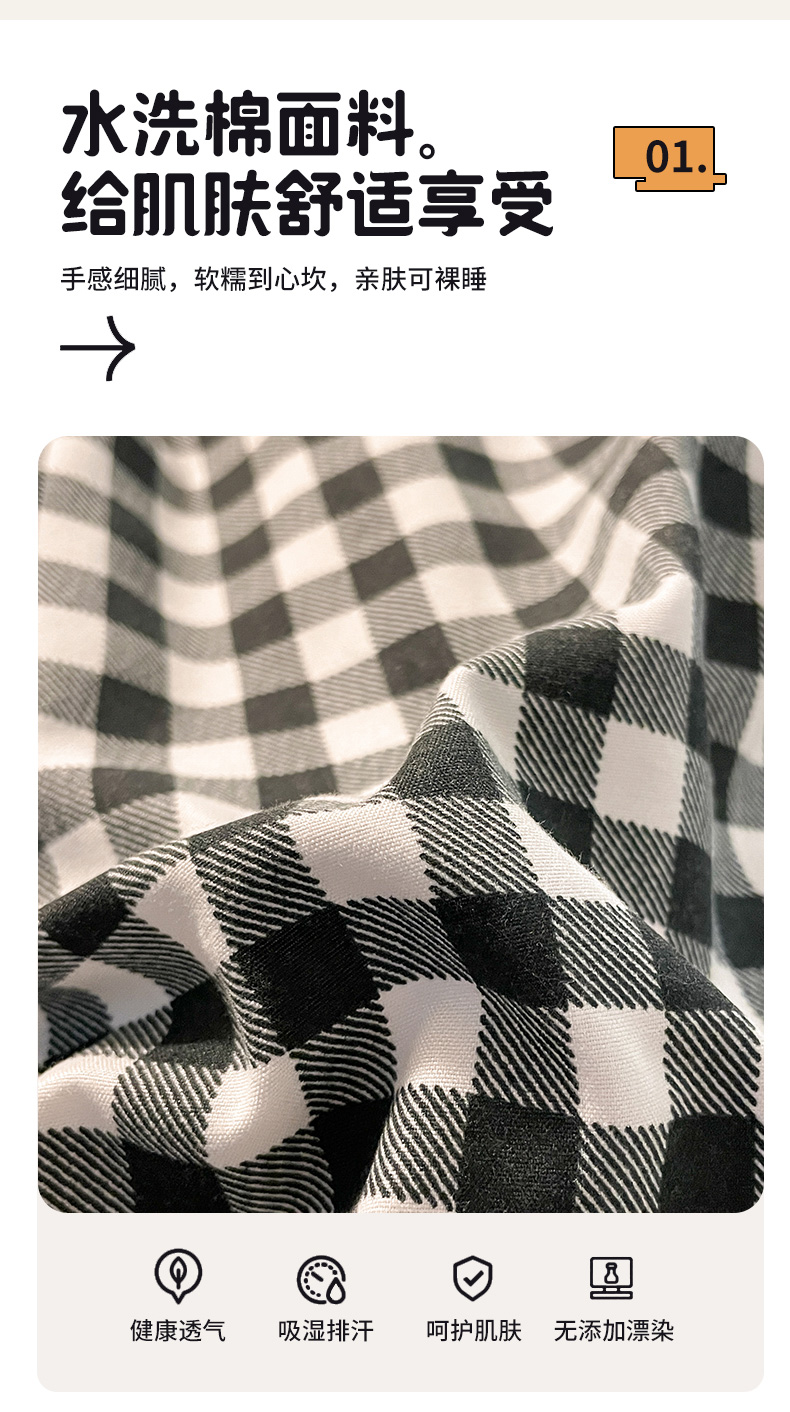 当前位置: 91家纺网 > 商品网购 > 床品套件 > 三件套 > 眠帛家居 2024新款A类学生三件套奶油风小清新毛巾绣暖心系列水洗棉床上用品四件套图2 暖心-绅士黑白格