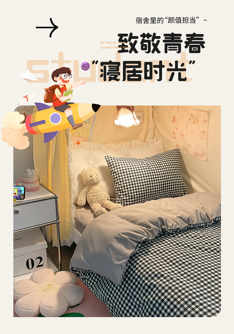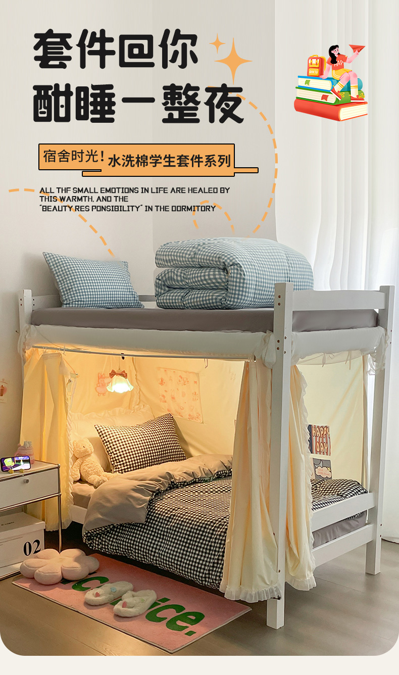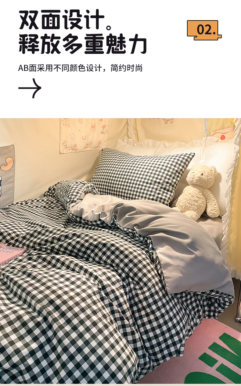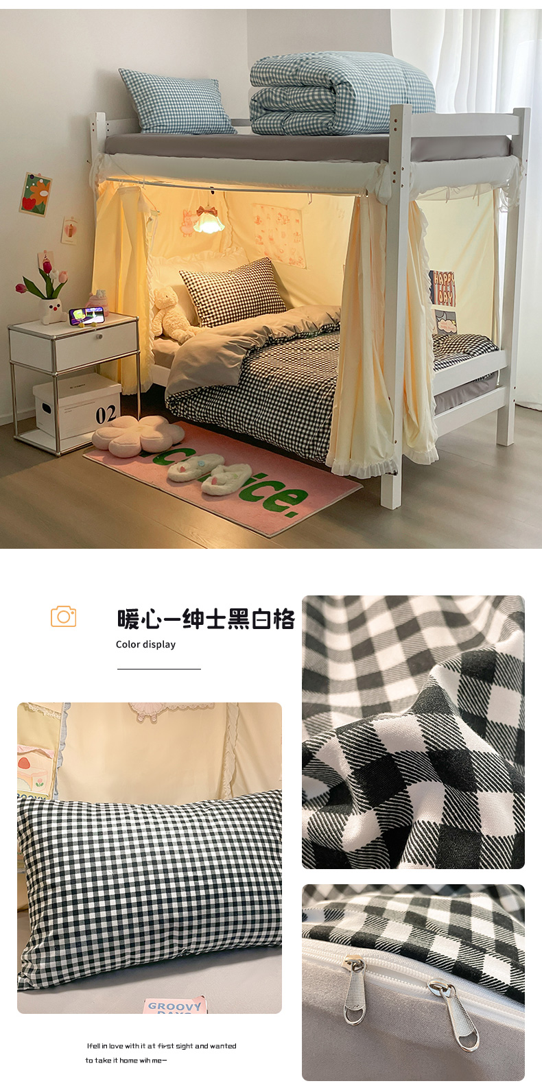 当前位置: 91家纺网 > 商品网购 > 床品套件 > 三件套 > 眠帛家居 2024新款A类学生三件套奶油风小清新毛巾绣暖心系列水洗棉床上用品四件套图2 暖心-绅士黑白格