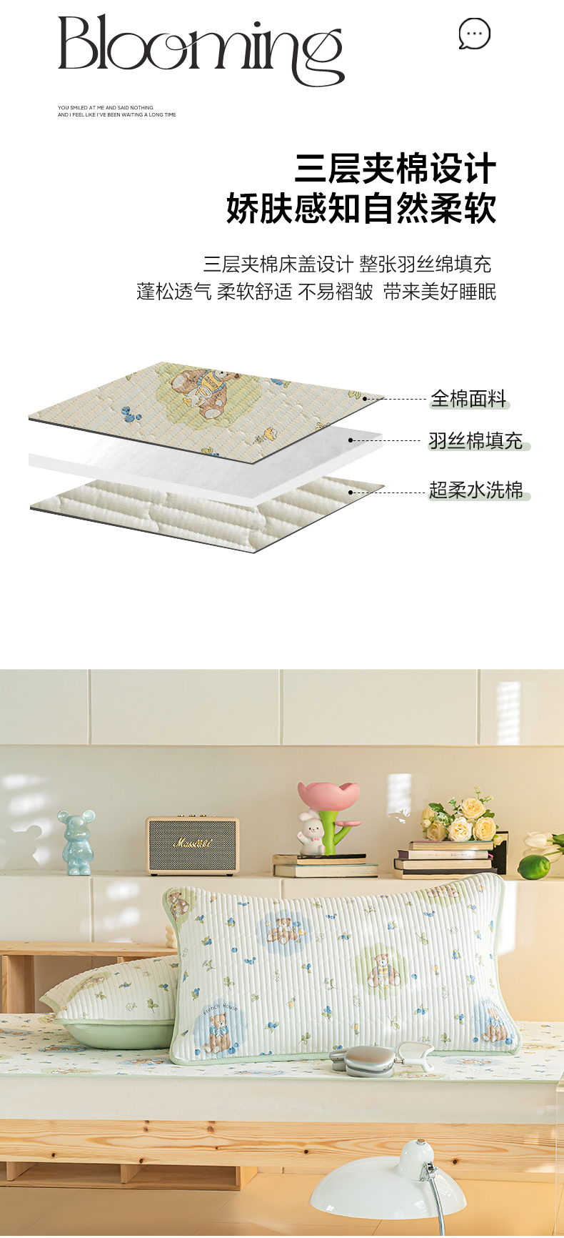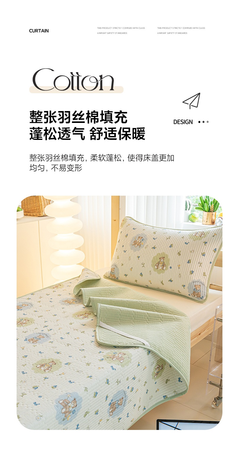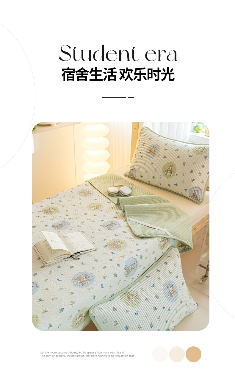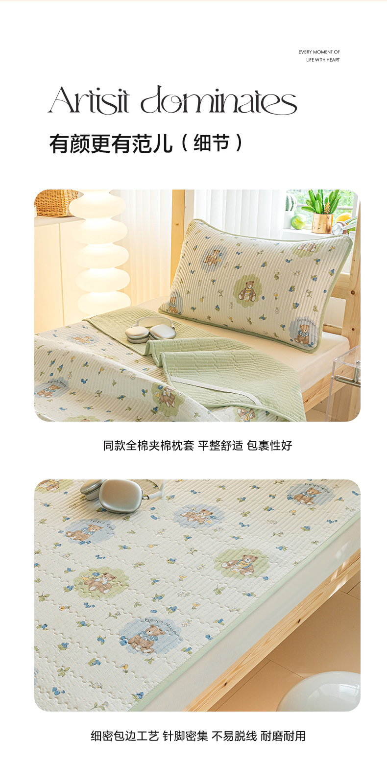 • 91家纺网 家纺一手货源 找家纺 X猫先生  2024新款小清新印花全棉床盖学生床盖套件-跑量款 4蜜罐熊