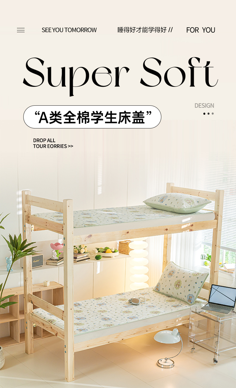 X猫先生 2024新款小清新印花全棉床盖学生床盖套件-跑量款 4蜜罐熊