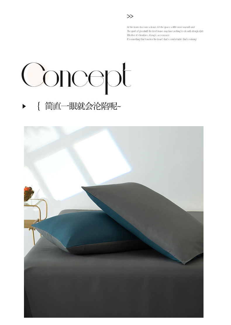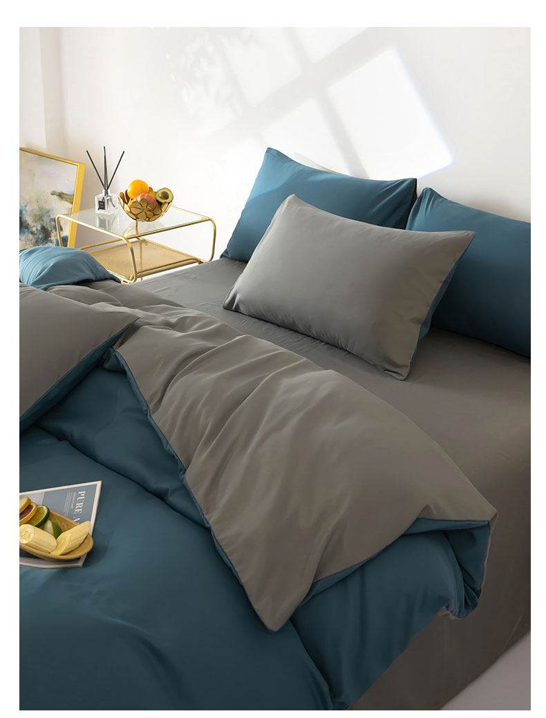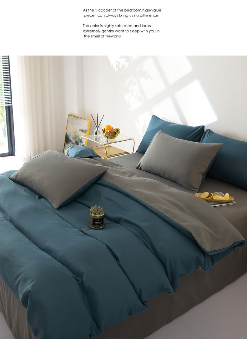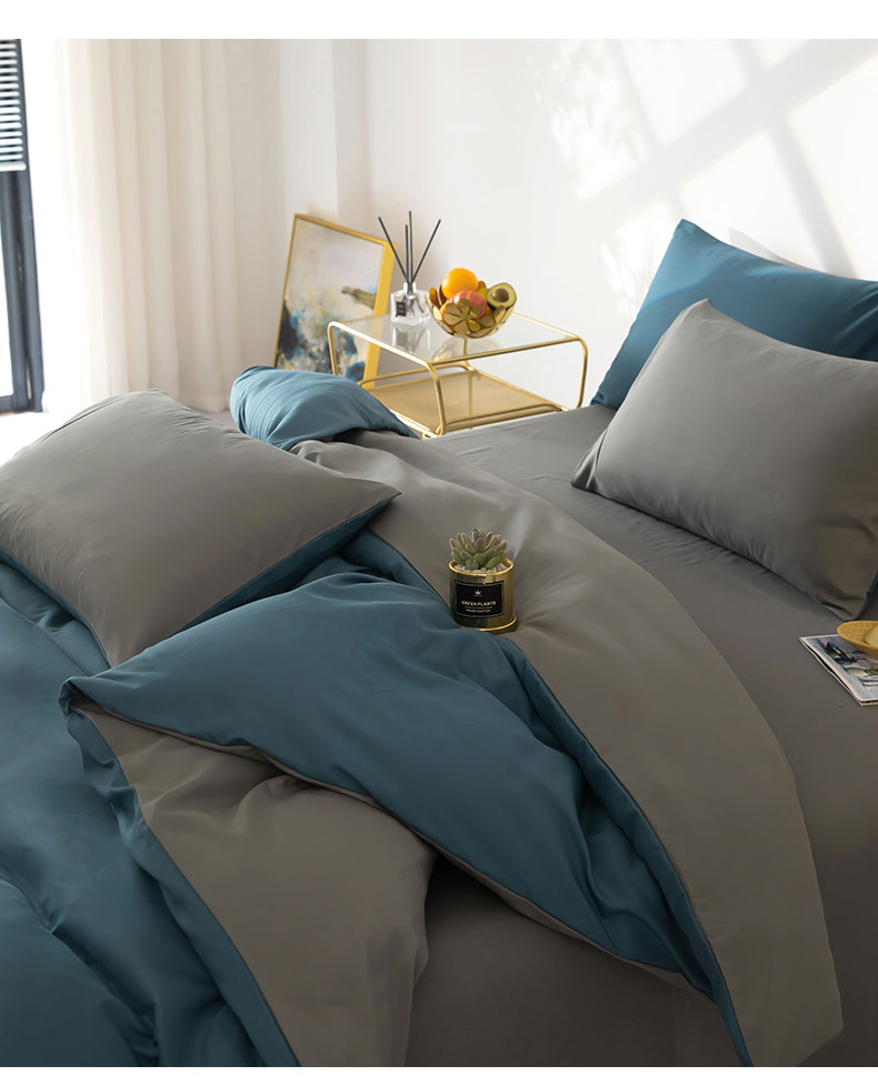 商品名称:梦莱家纺 2024新款亲肤磨毛纯色拼色轻奢系列四件套 深蓝+深灰