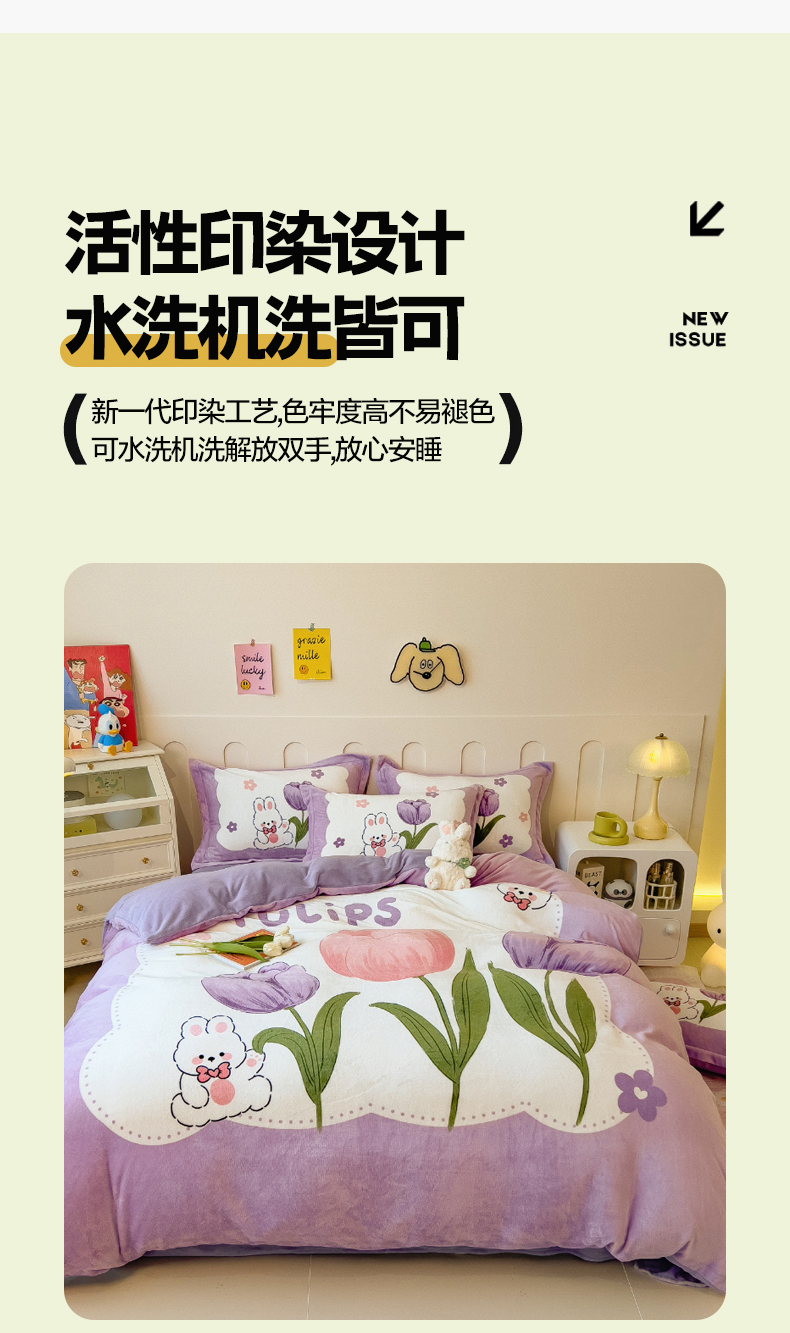 商品名称:丝羽坊 2024新款大版卡通印花牛奶绒四件套 郁金小兔