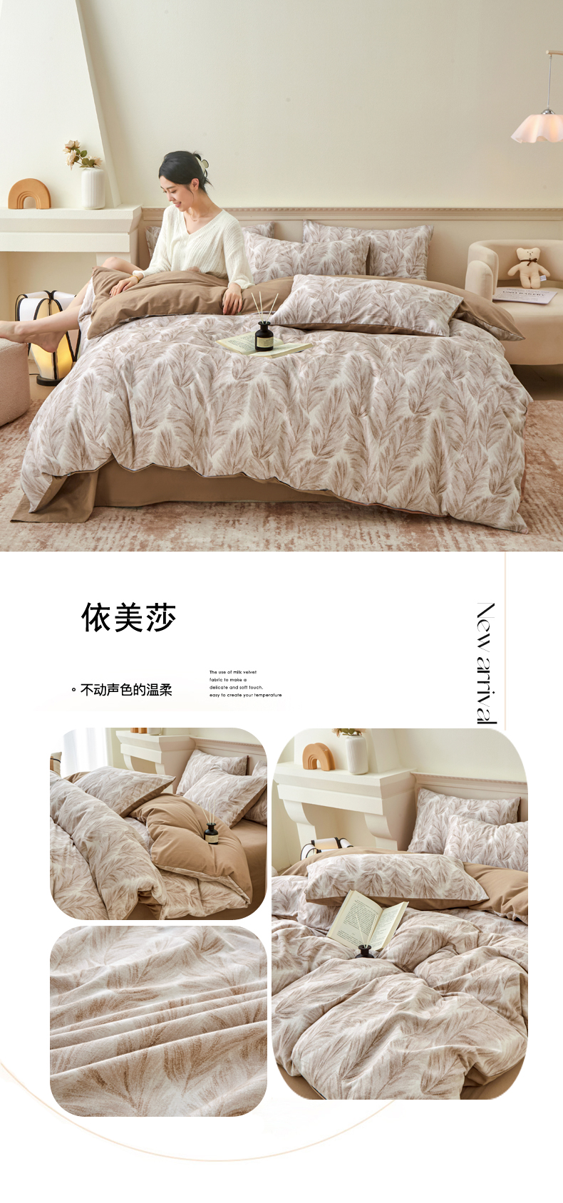商品名称:柠馨 2024新款基础款全棉磨毛纯色四件套 依美莎