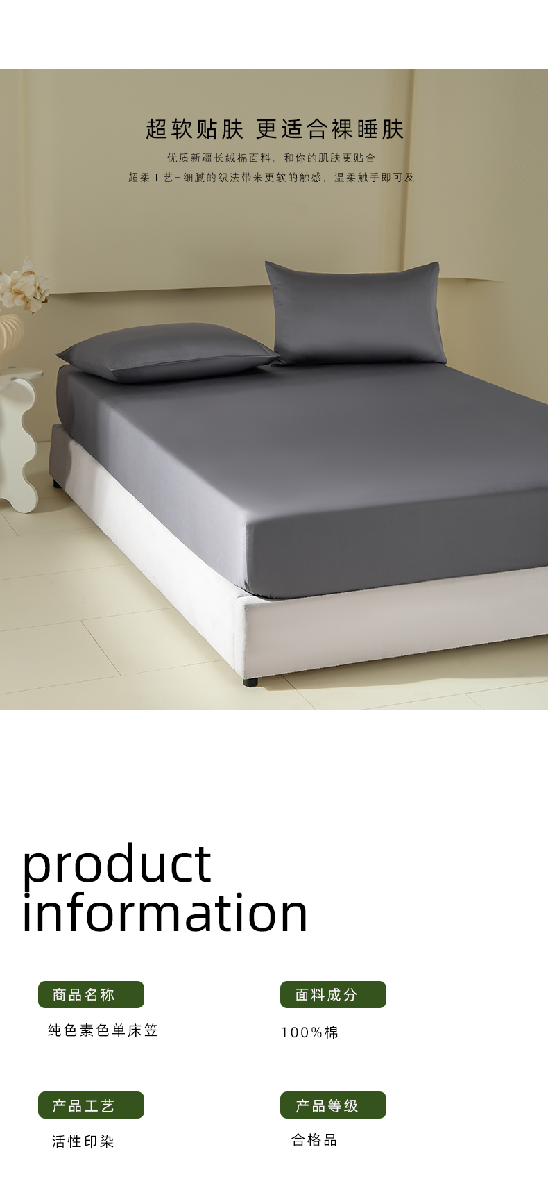 床上用品 > 床笠 > Mr.pig猪先生水洗棉 2024新品 A类全棉50S贡缎长绒棉单床笠床罩纯棉床垫保护套学生宿舍三件套床上用品 绅士灰