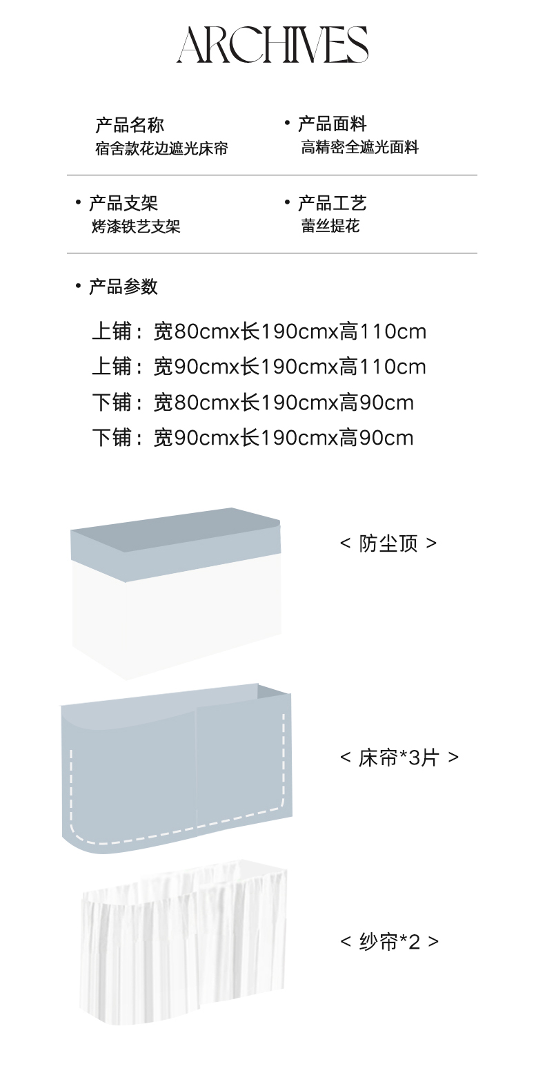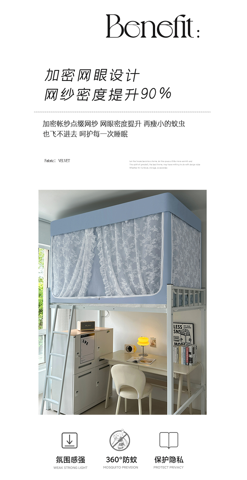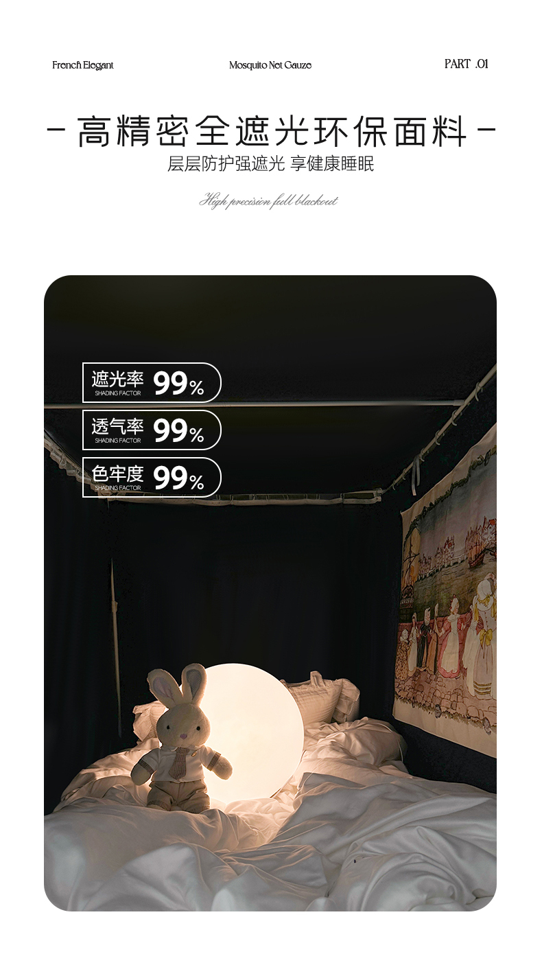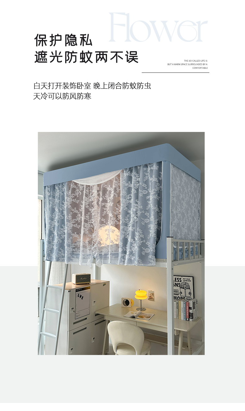 商品名称:(总)都市缘 2024新款高精密强遮光床帘学生蚊帐拉链方帐602学生方帐