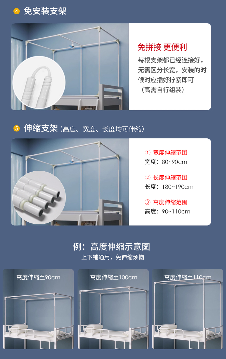 90cm下铺 一秒速装支架带靠墙帘的 | ¥110.00 |