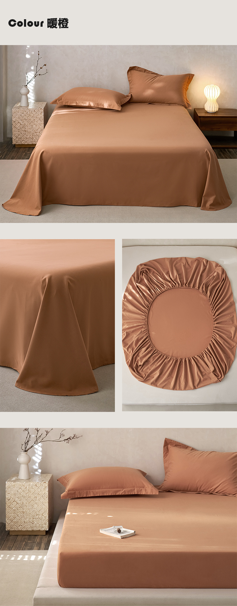 商品名称:ROZ home 蕊姿家居 2024新款超柔磨毛全棉单床单 暖橙