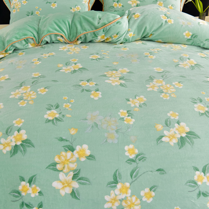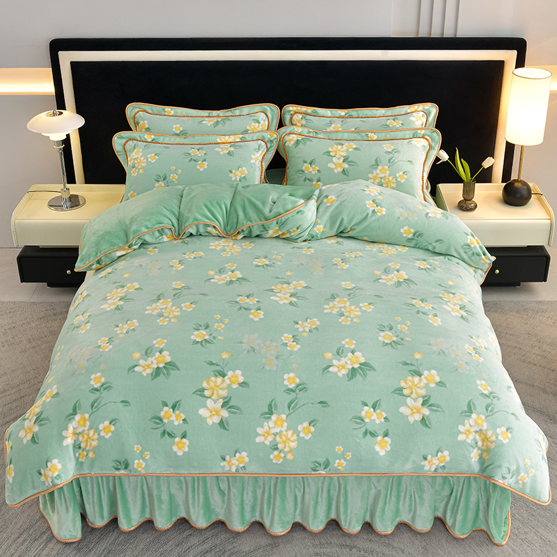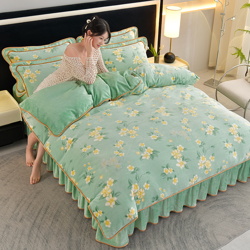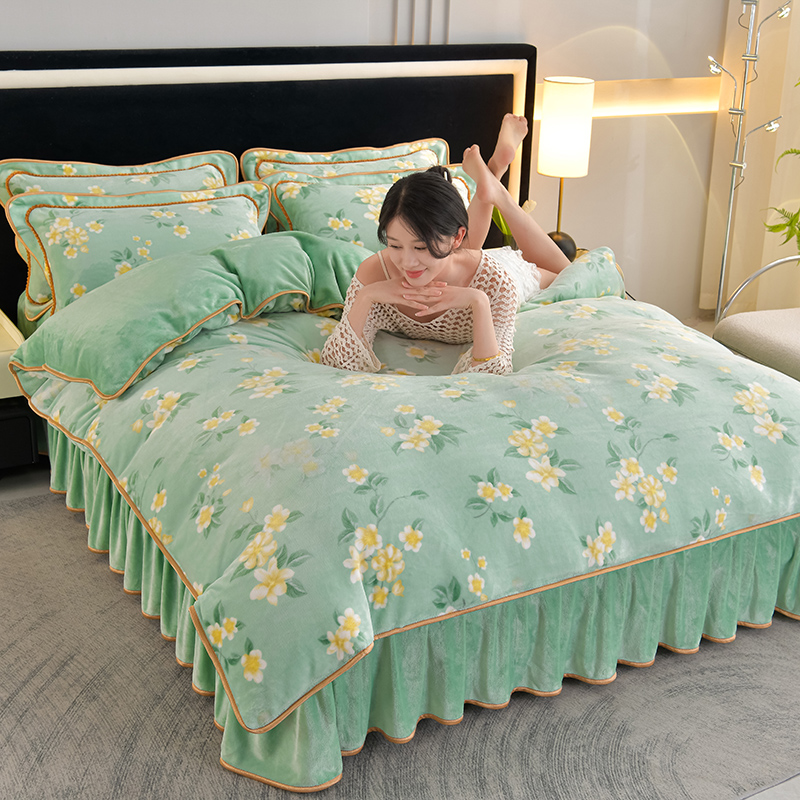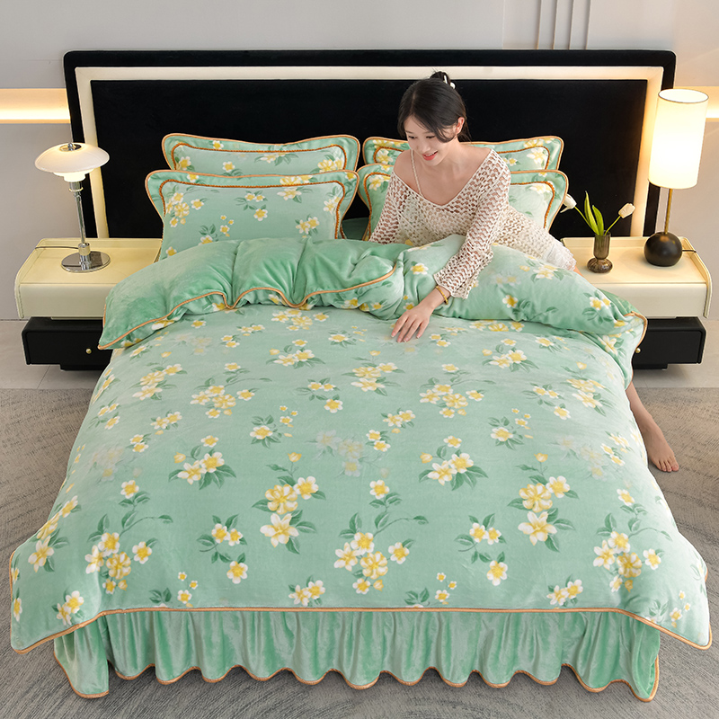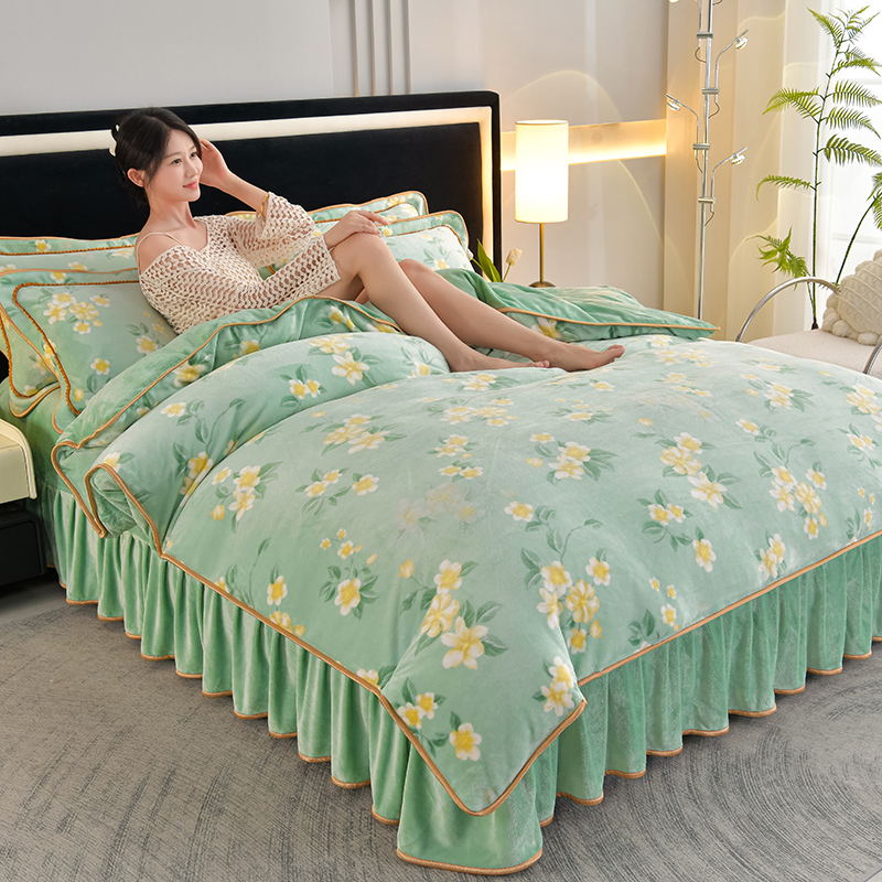 商品名称:诺梵 2025直播8.5斤高克重牛奶绒四件套水晶金貂法莱绒床裙款 花满园