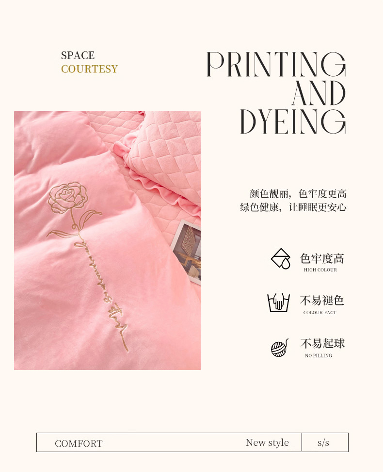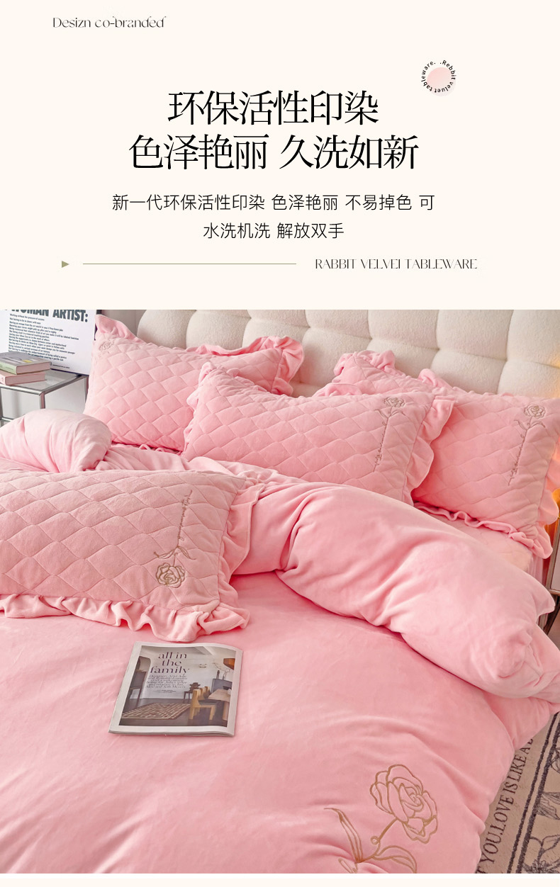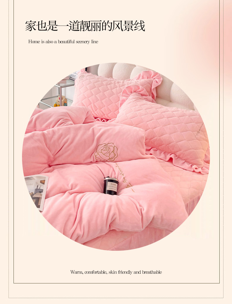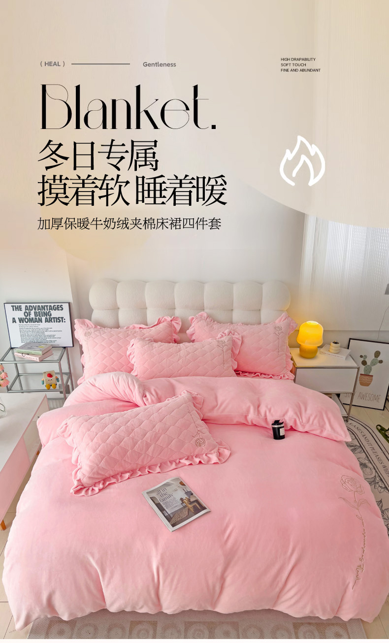 当前位置: 91家纺网 > 商品网购 > 床品套件 > 四件套 > 牛奶绒四件套 > 星尚家纺 2024新款加厚保暖全消光牛奶绒夹棉床裙四件套-玫瑰之恋 粉玉