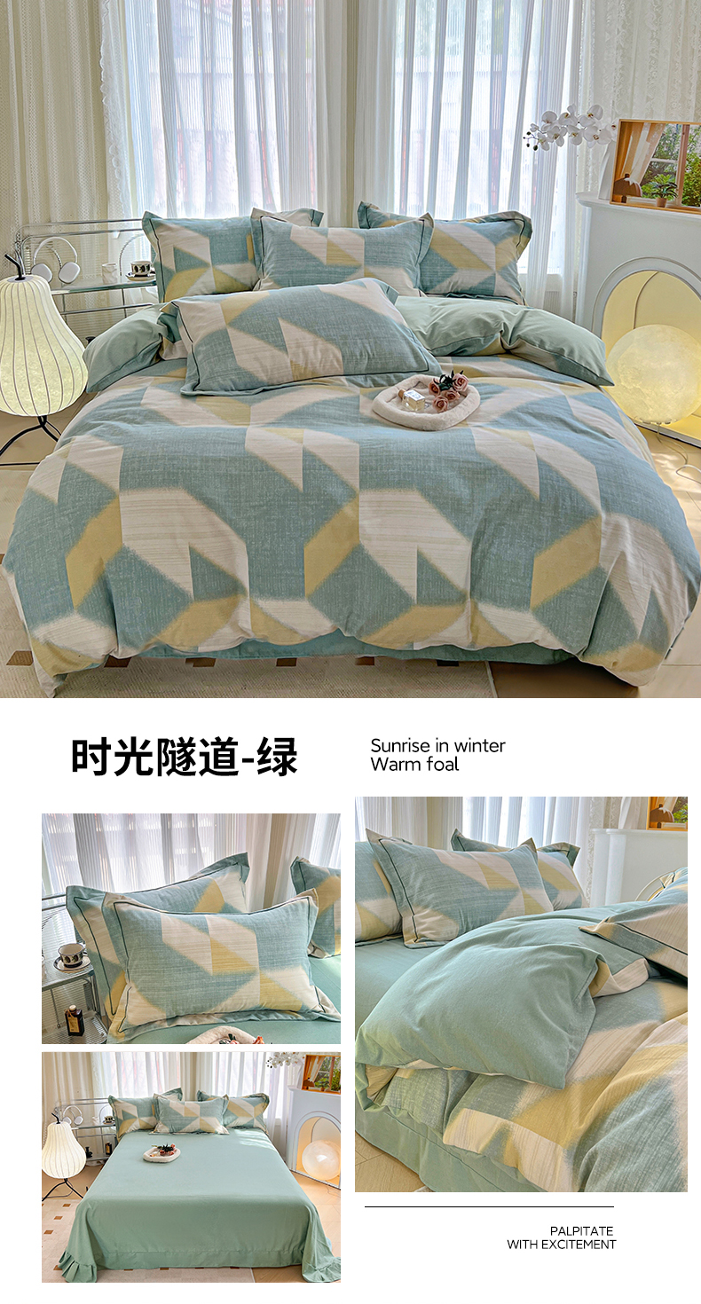 当前位置: 91家纺网 > 商品网购 > 床品套件 > 四件套 > 普通磨毛四件套 > 眷恋家纺 2025秋冬新款全棉纯棉喷气加厚磨毛纯棉四件套 时光隧道-绿