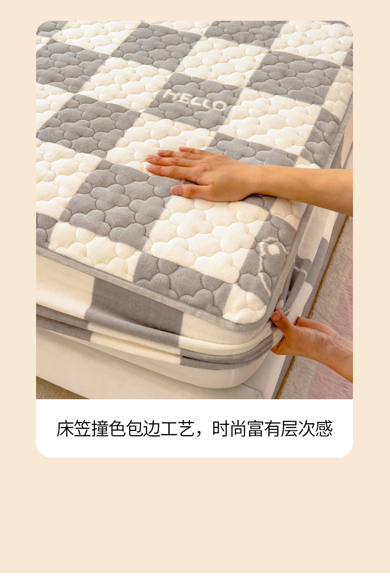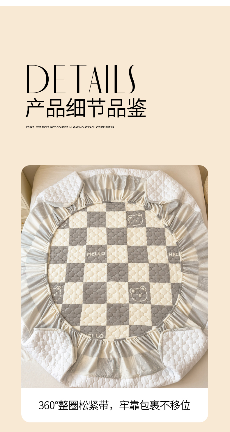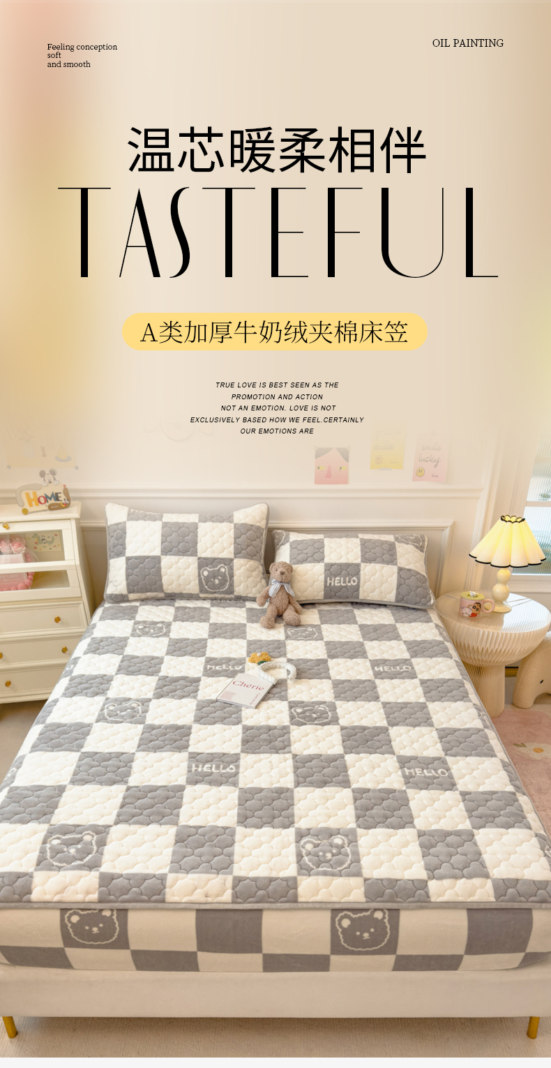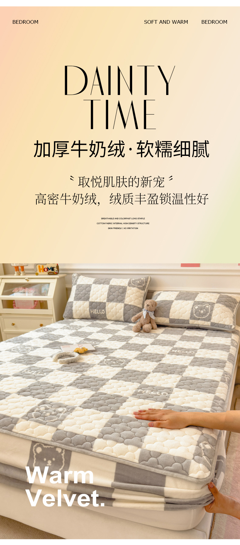 • 91家纺网 家纺一手货源 找家纺 丝羽坊 2024新款A类加厚牛奶绒夹棉床笠 格子小熊