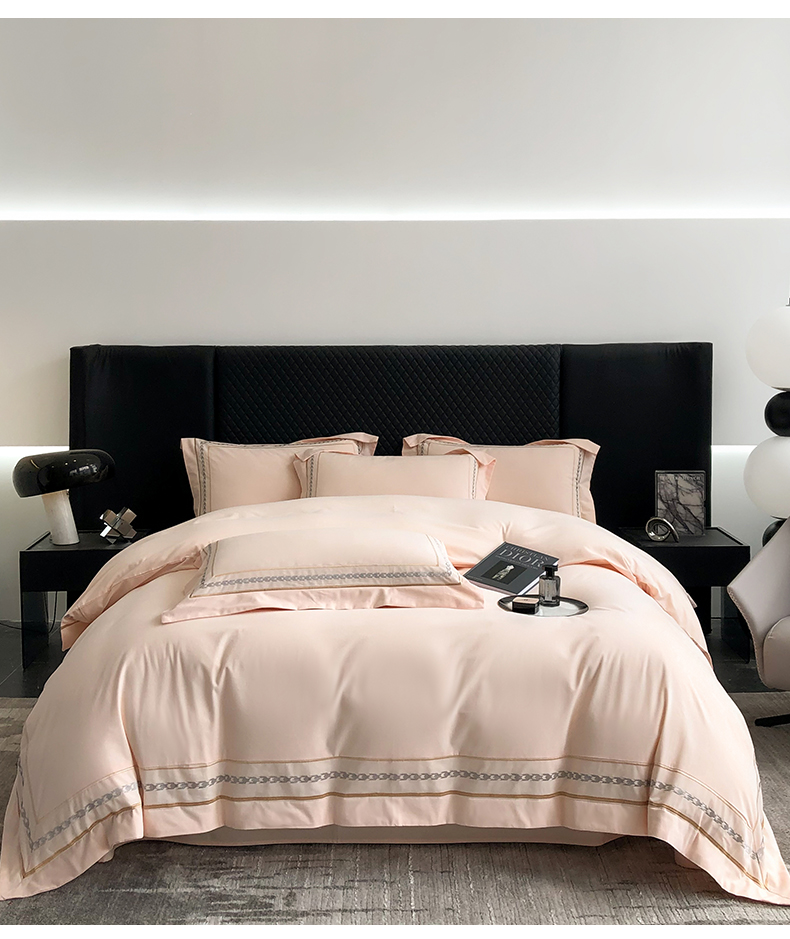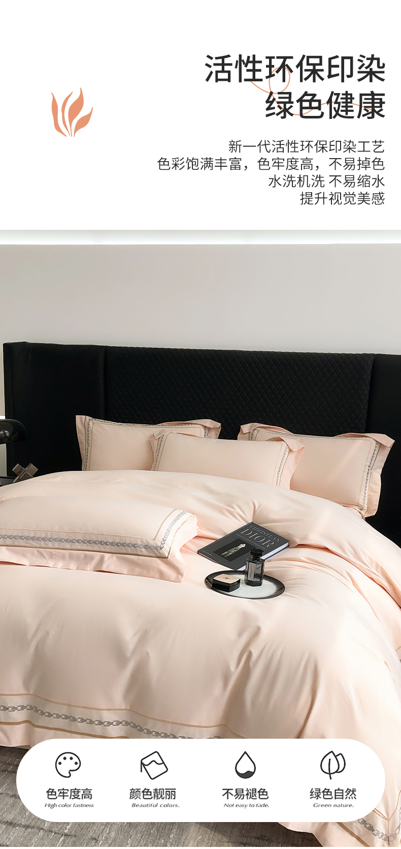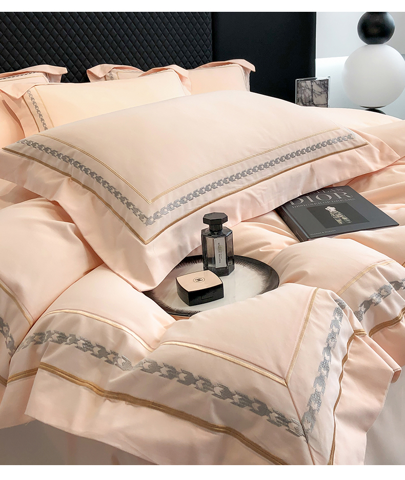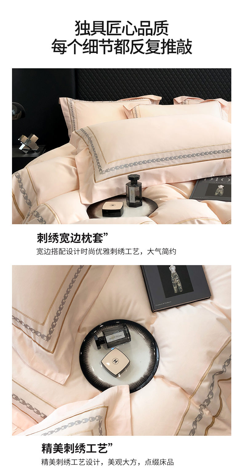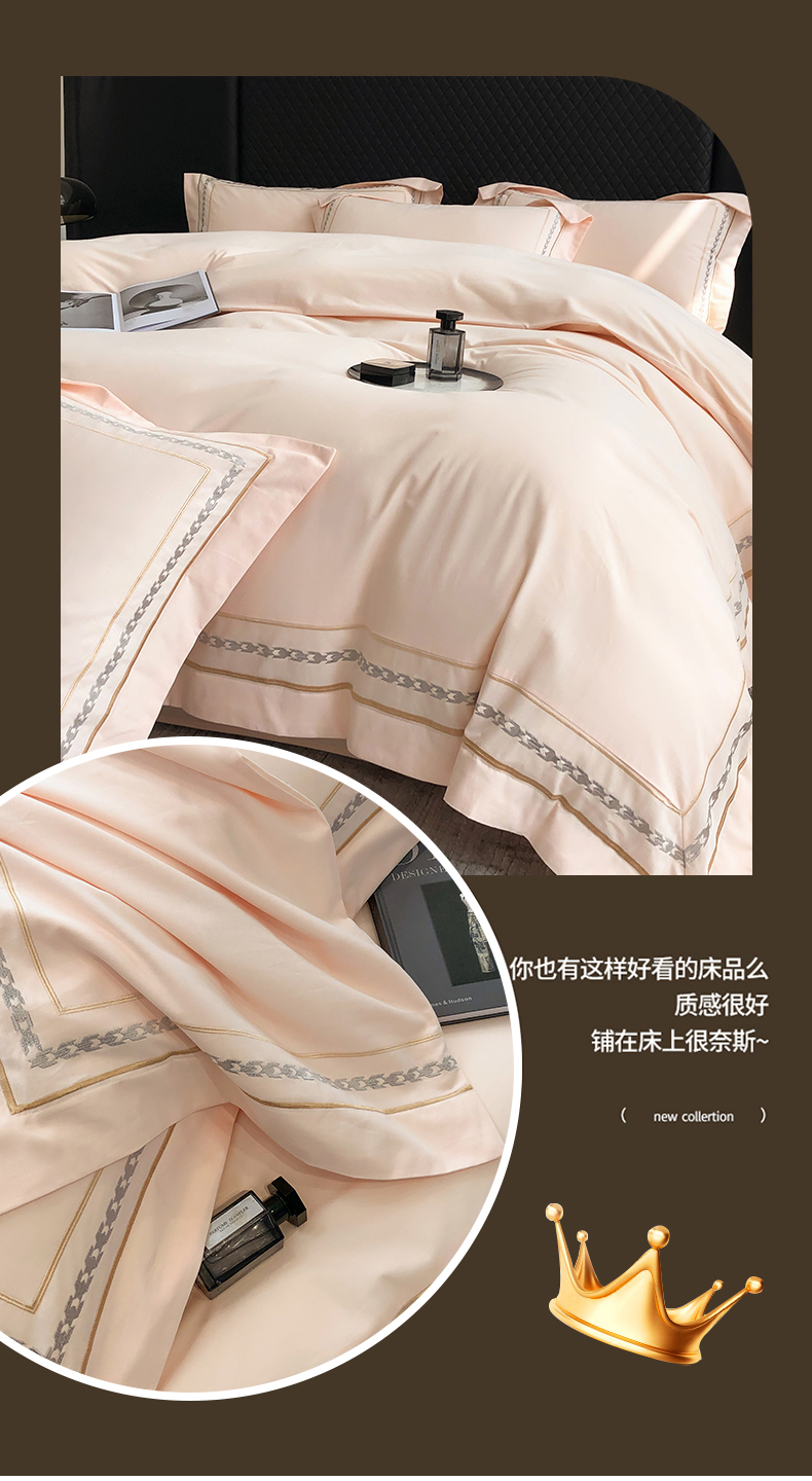 商品名称:家居1号家纺 2024新款加厚全棉磨毛宽边刺绣拼角四件套-维多利 维多利 奶桃色