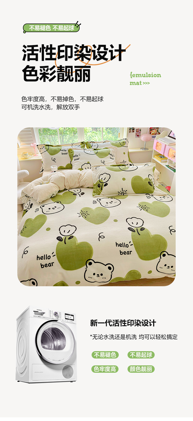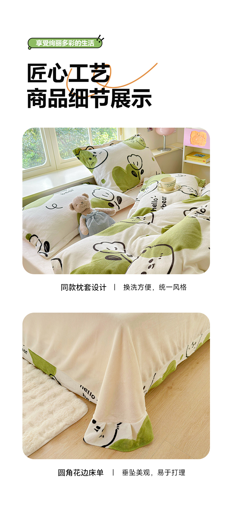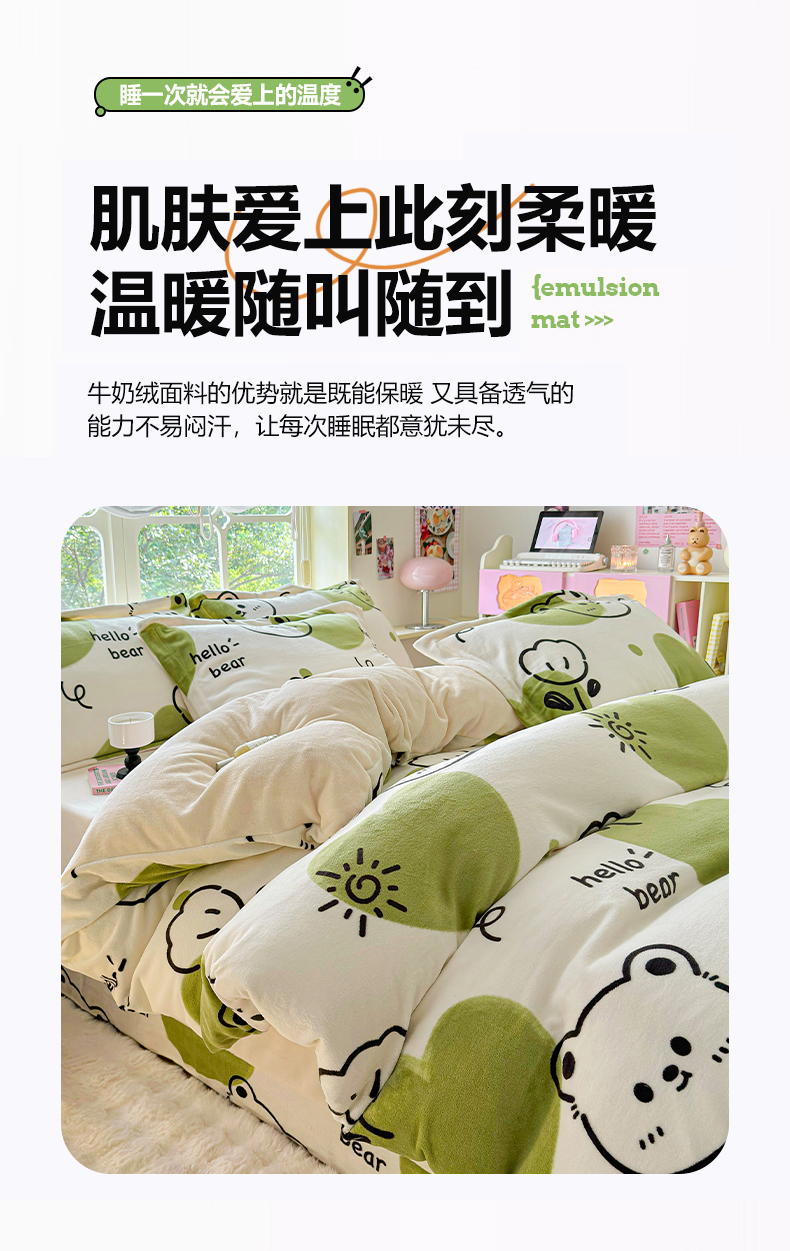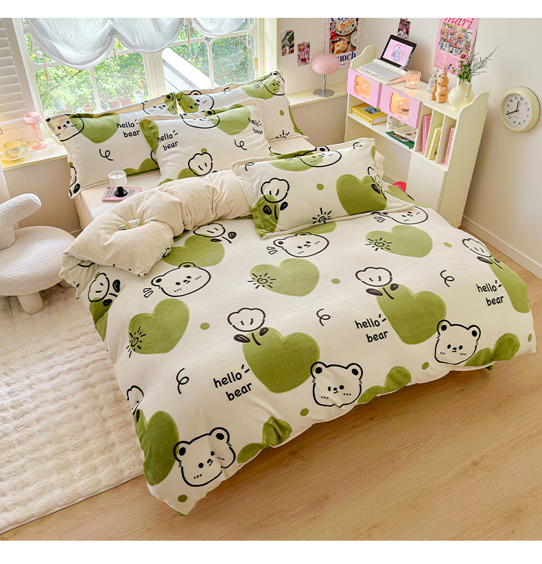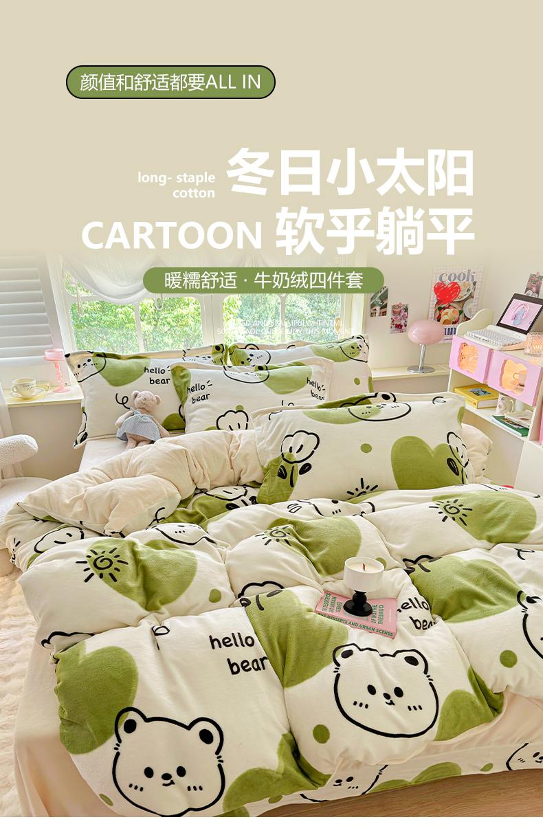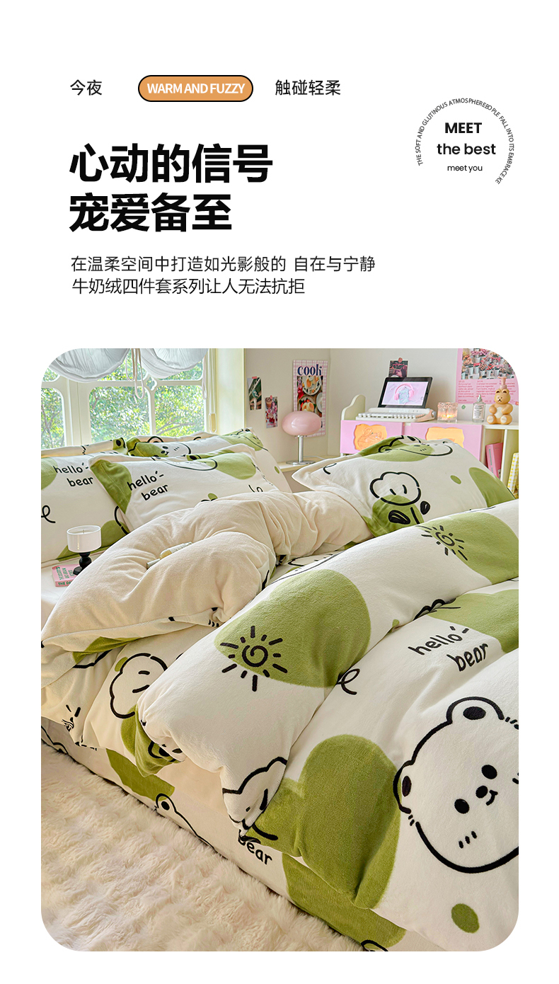 商品名称:呗旺鹿 2024新款高克重印花牛奶绒四件套 开心熊