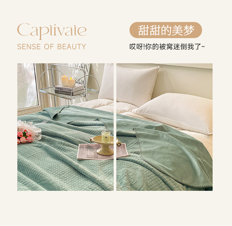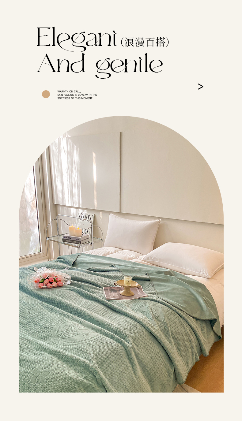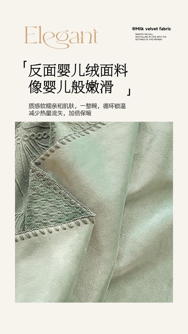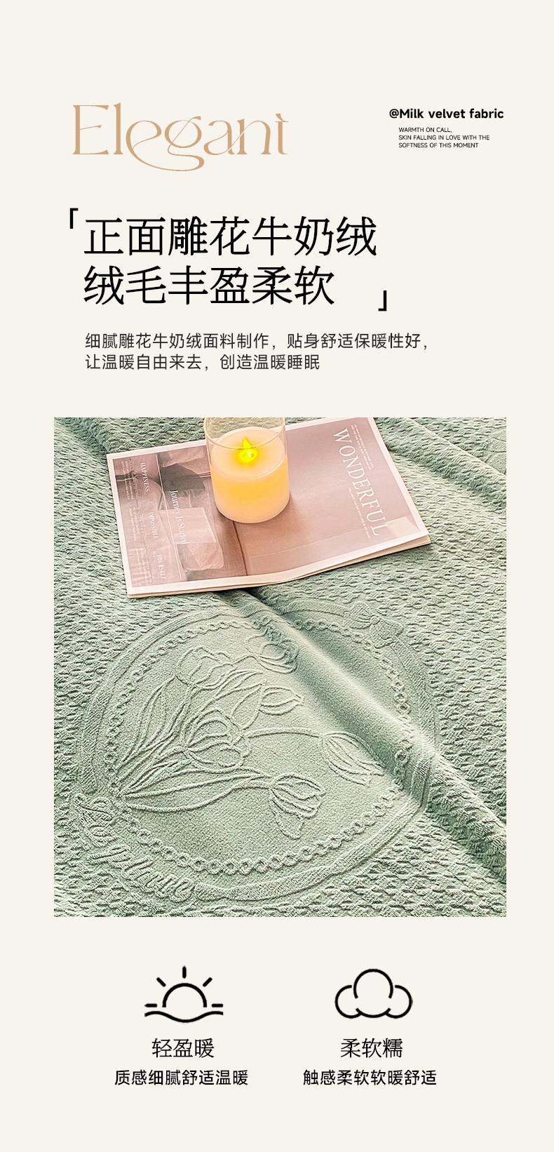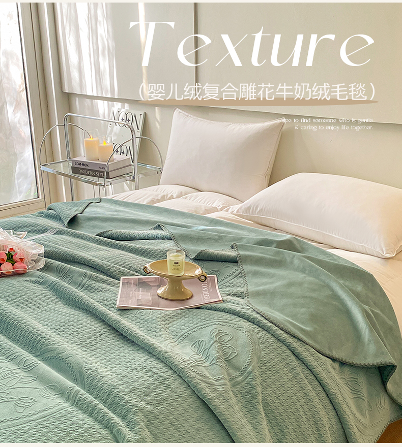 商品名称:胜权家纺 2024秋冬新款加厚双层婴儿绒复合雕花牛奶绒多功能毛毯盖毯空调毯子 马尔斯绿