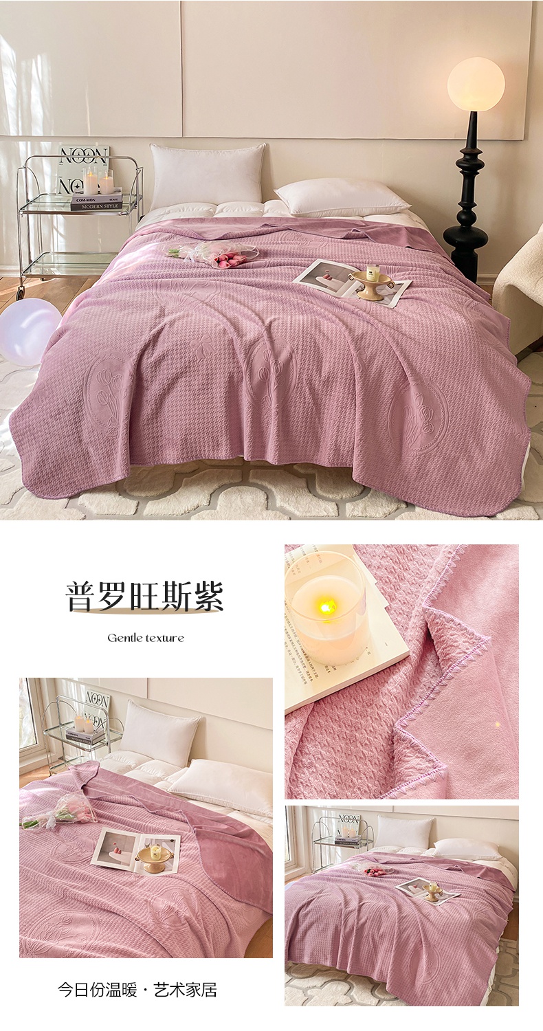 (总)胜权家纺 2025秋冬新款A类全消光高克重5D雕花牛奶绒仙女风夹棉床盖单品系列,梦安娜-湖蓝,梦安娜-靓紫,梦安娜-嫩粉,梦安娜-浅米