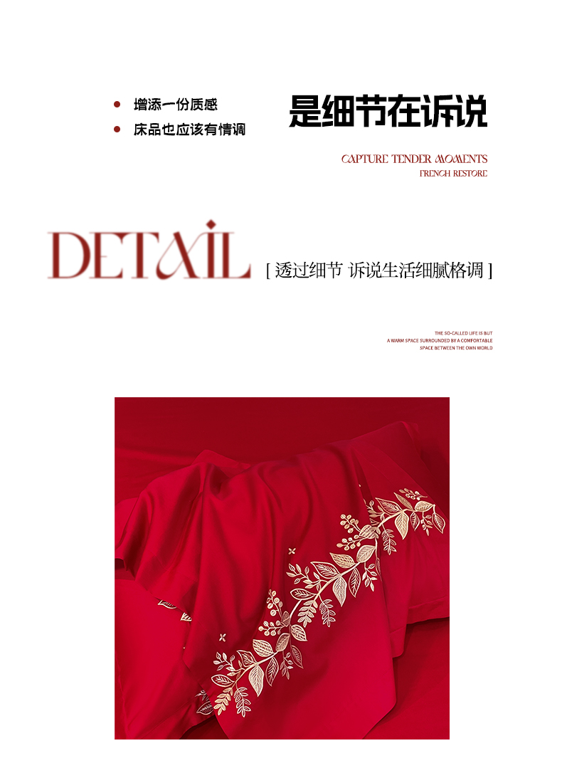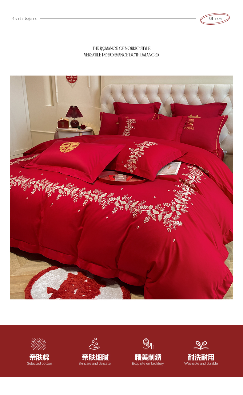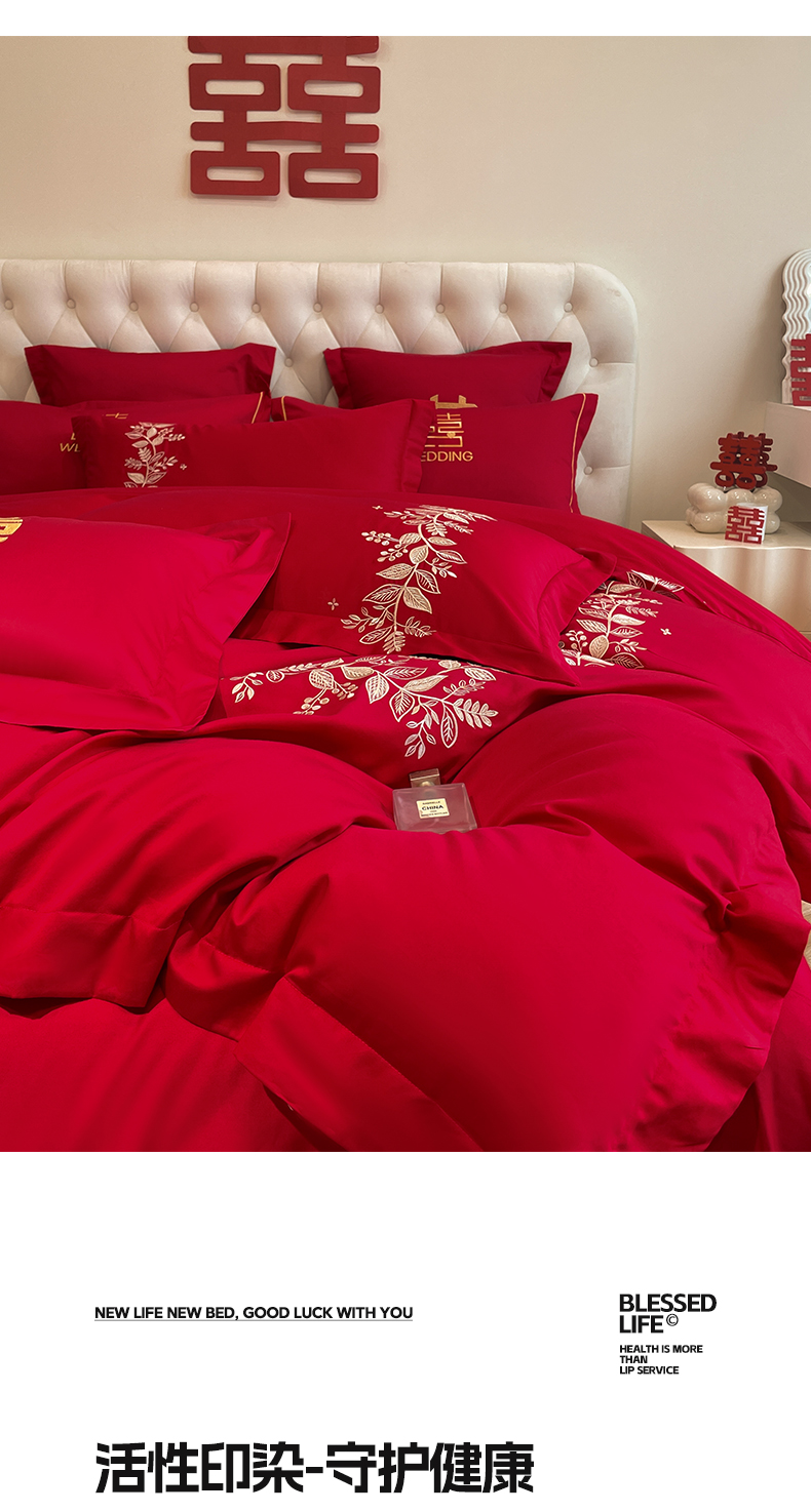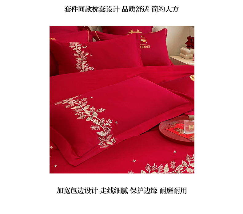 (总)欧乐蒂 2025新款亲肤棉刺绣花边婚庆四件套-浪漫花季,浪漫花季-红,浪漫花季-金