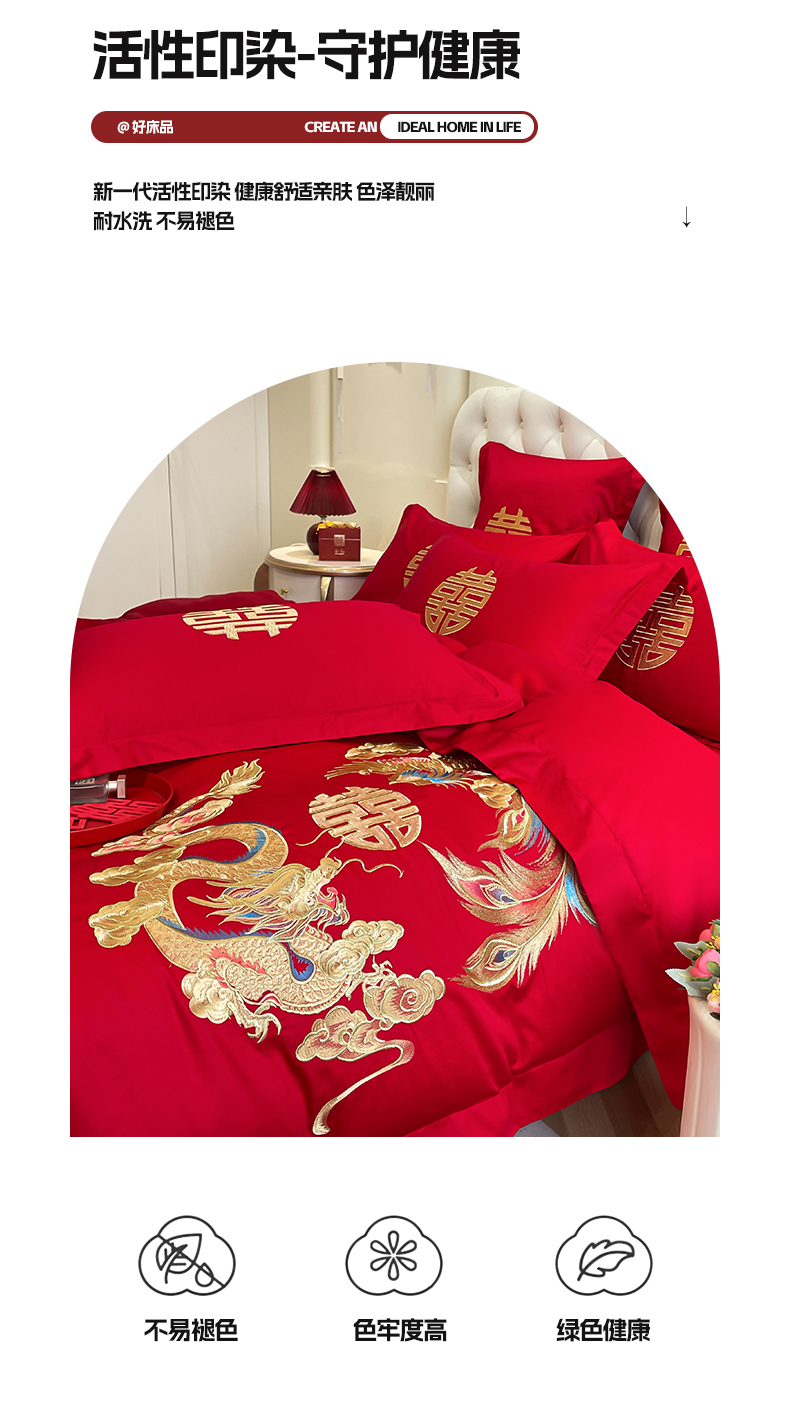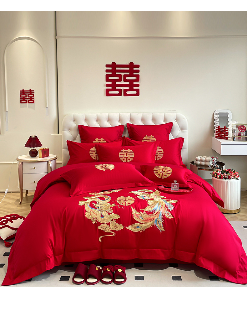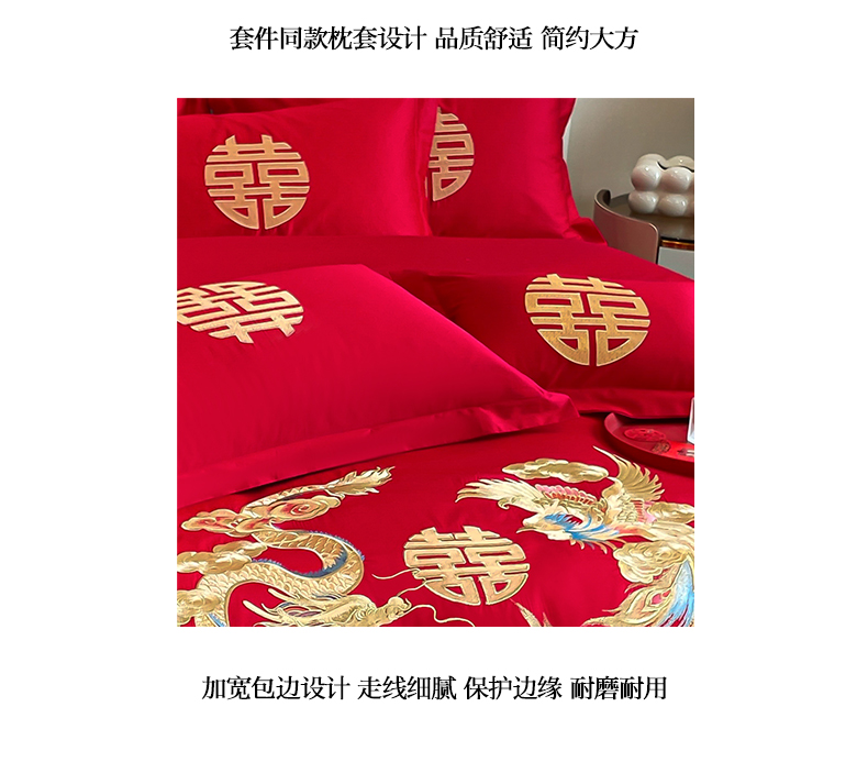 商品名称:欧乐蒂 2025新款亲肤棉婚庆刺绣四件套系列 欢喜龙凤