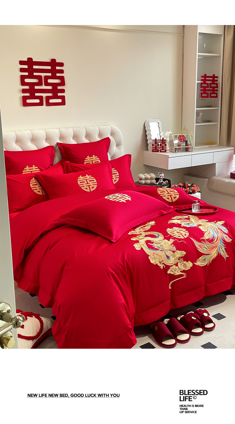 欧乐蒂 2025新款亲肤棉婚庆刺绣四件套系列 欢喜龙凤