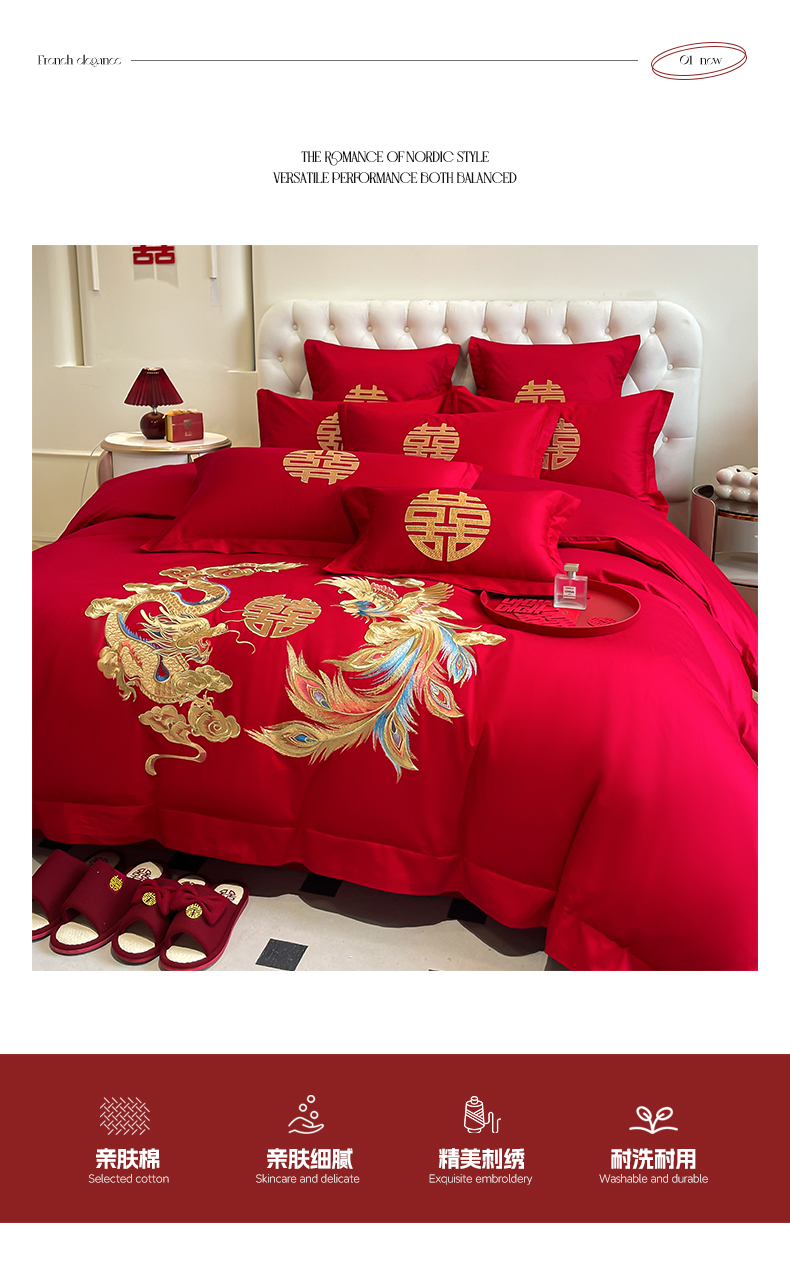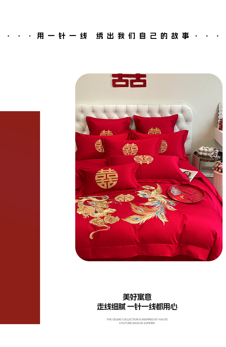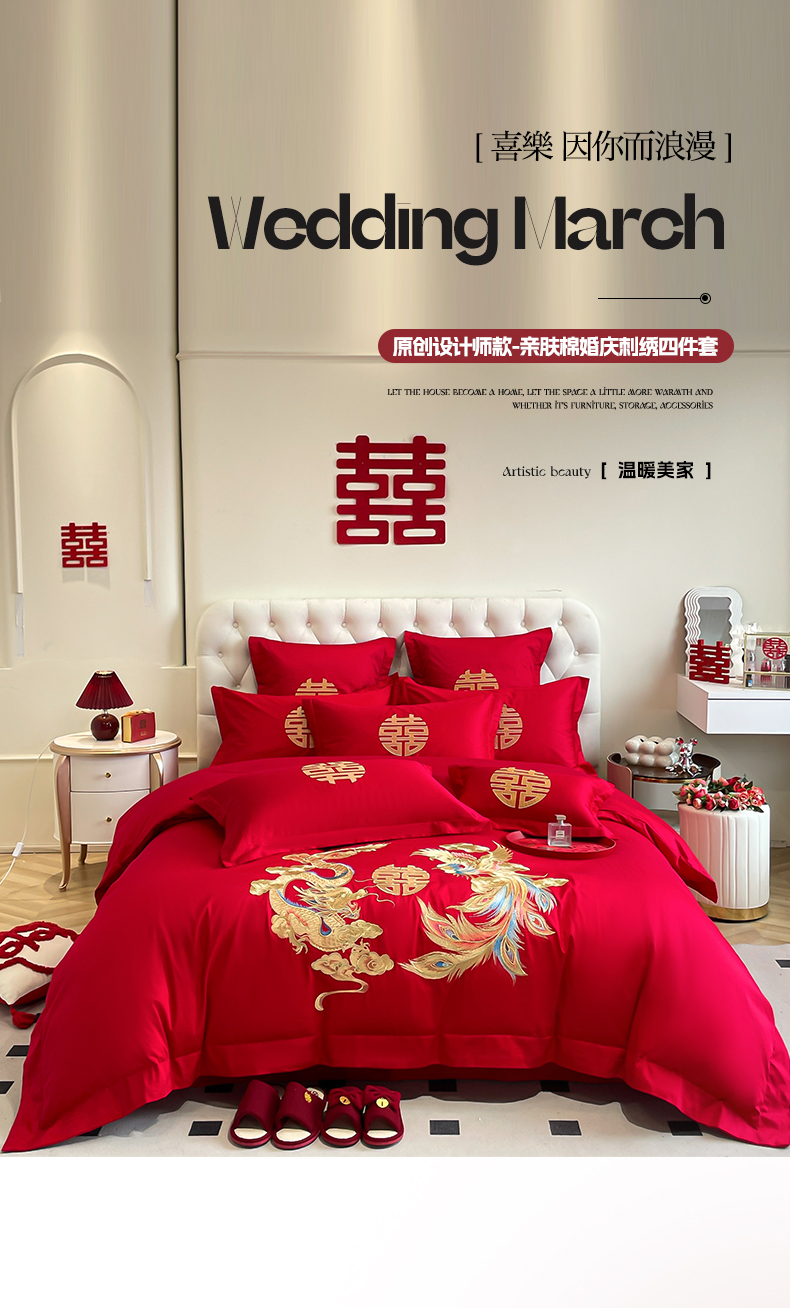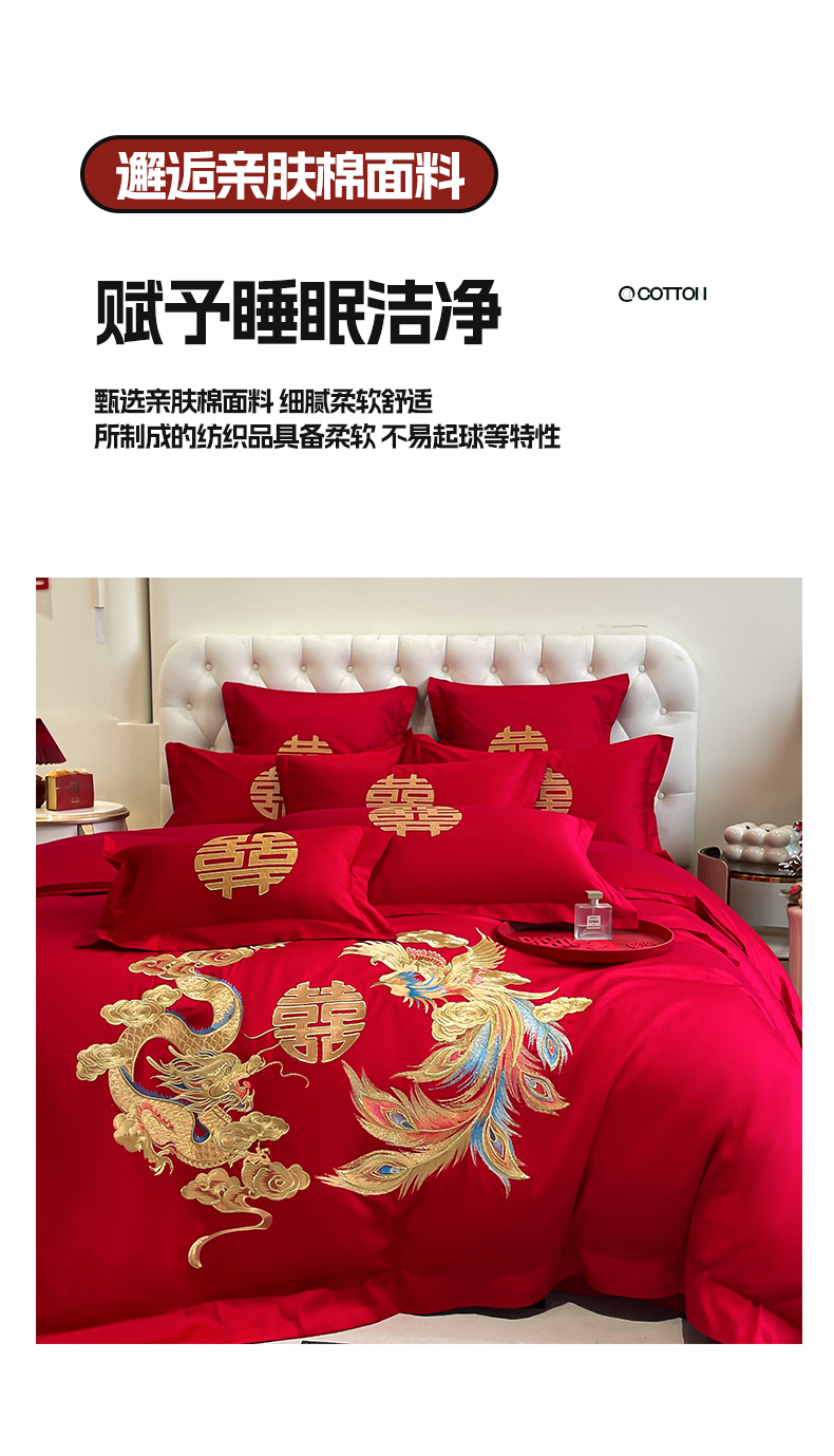 (总)欧乐蒂 2025新款设计师原创亲肤棉婚庆四件套,云喜东方,双喜临门,喜乐,喜事连连,爱恋,玫瑰爱恋,花开富贵,金枝玉叶,锦绣佳缘,龙姿风采