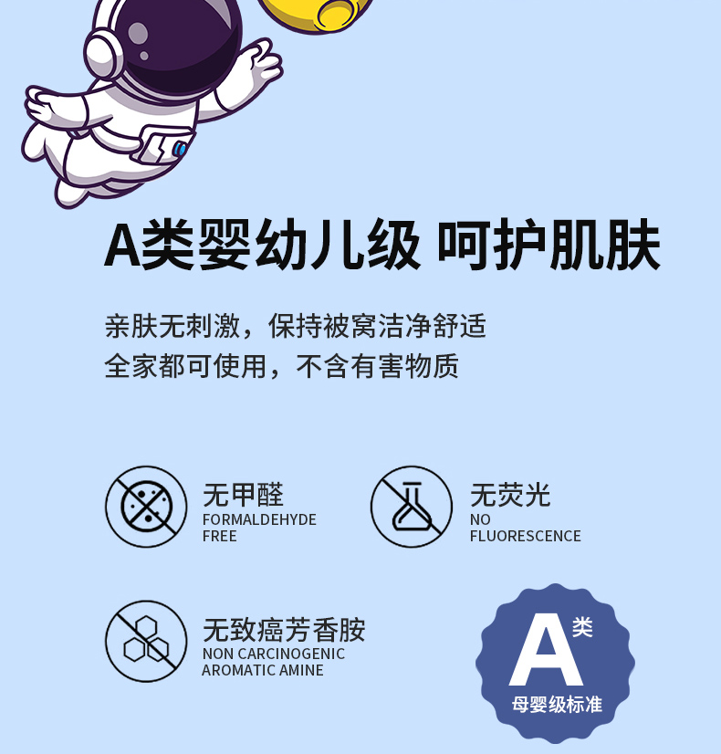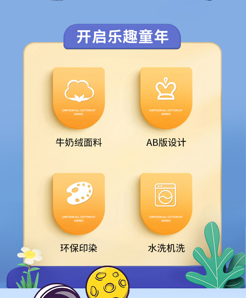 商品名称:(总)孩子王家纺 2024新款太空人系列大版双面牛奶绒学生幼儿园系列三件套六件套多件套