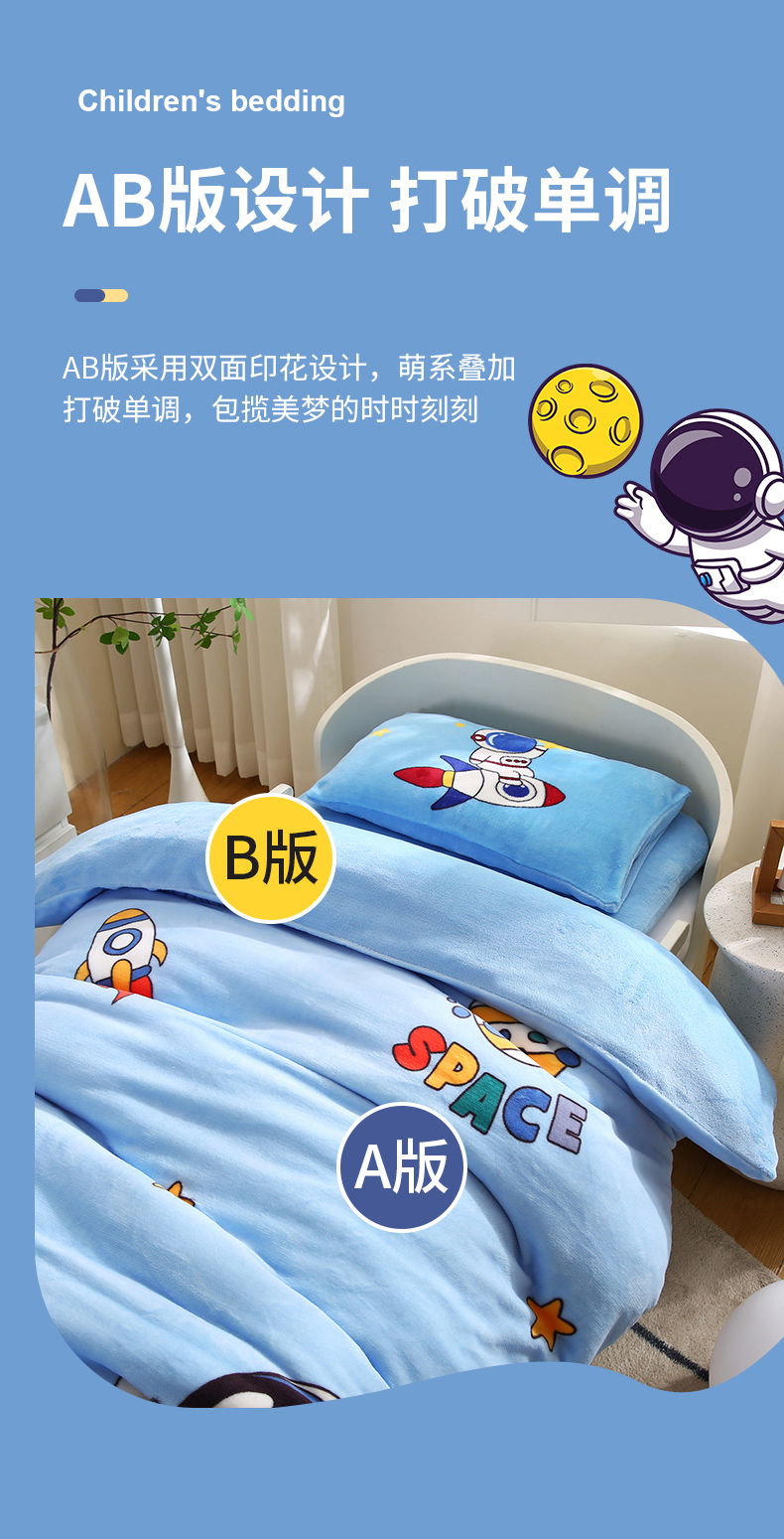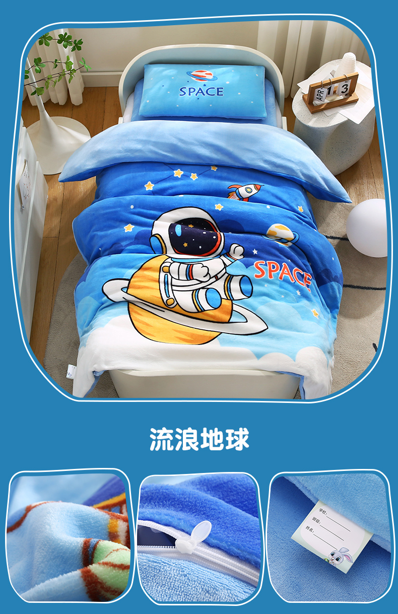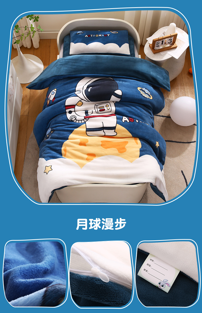 (总)孩子王家纺 2024新款太空人系列大版双面牛奶绒学生幼儿园系列三件套六件套多件套