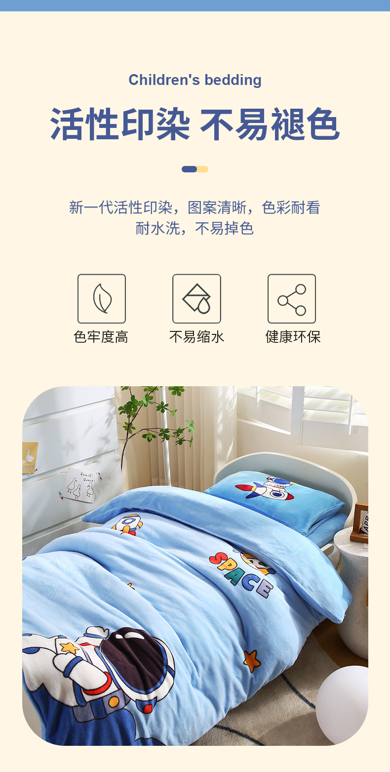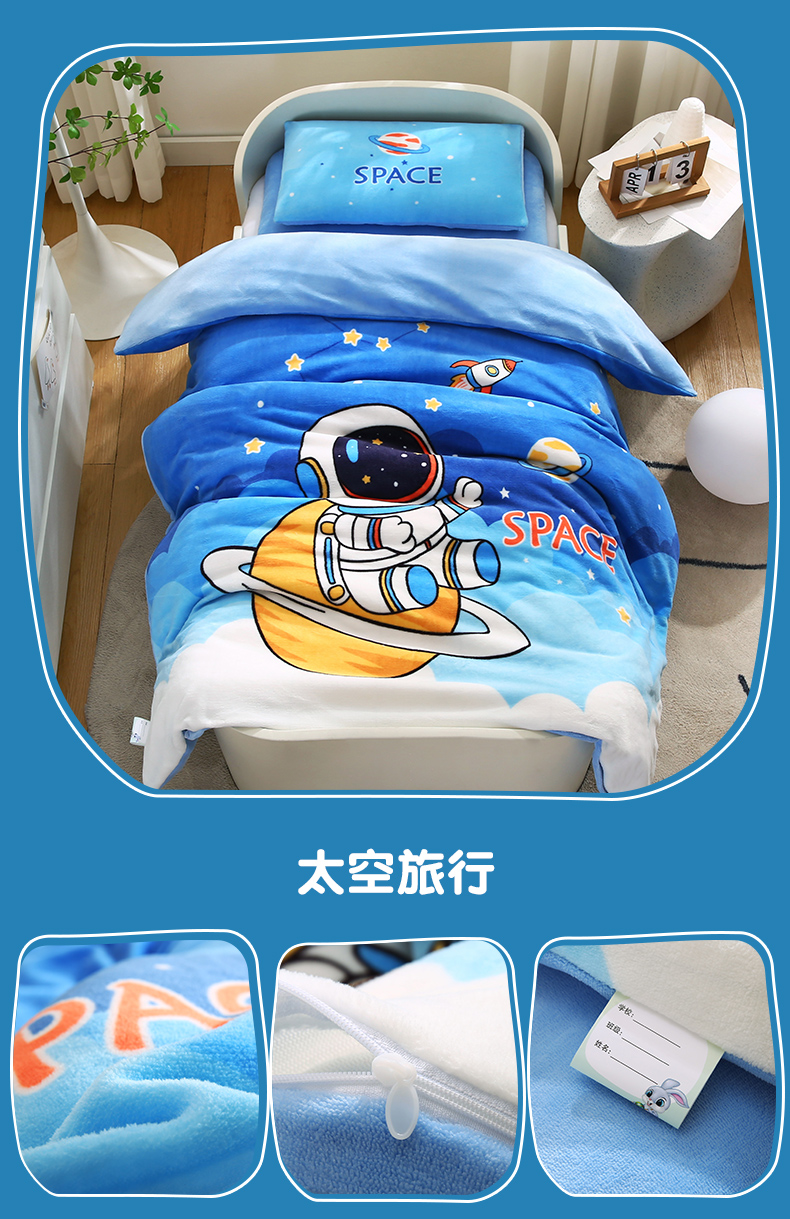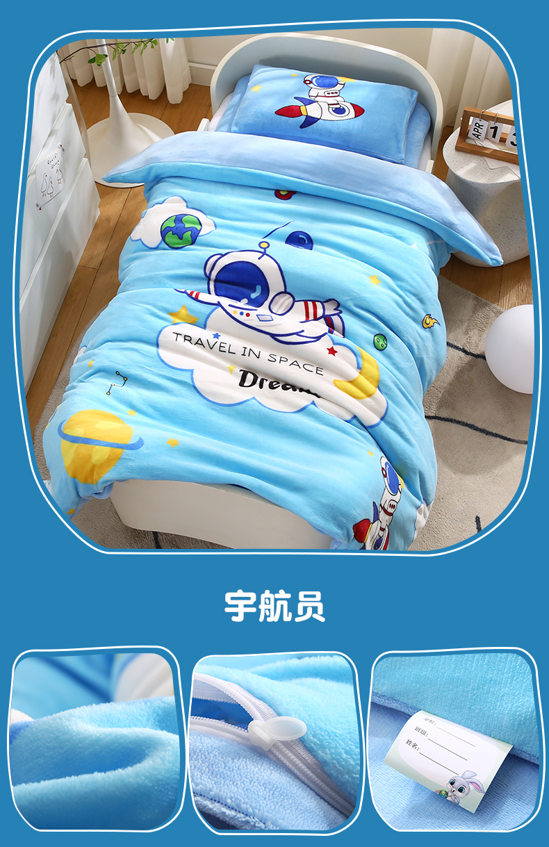 (总)孩子王家纺 2024新款太空人系列大版双面牛奶绒学生幼儿园系列三件套六件套多件套