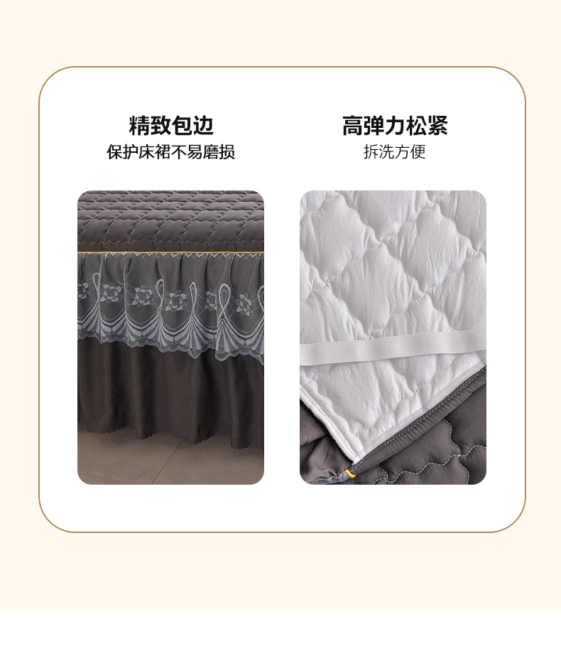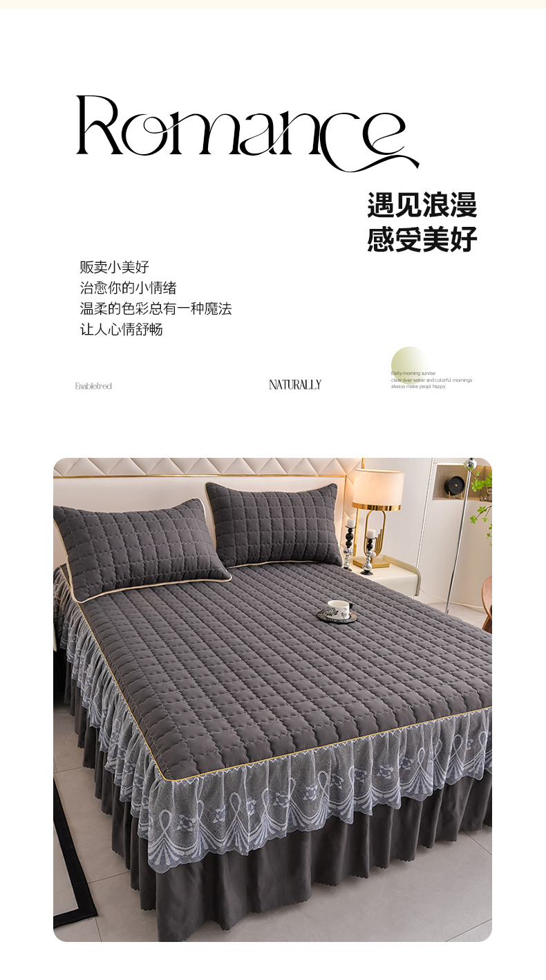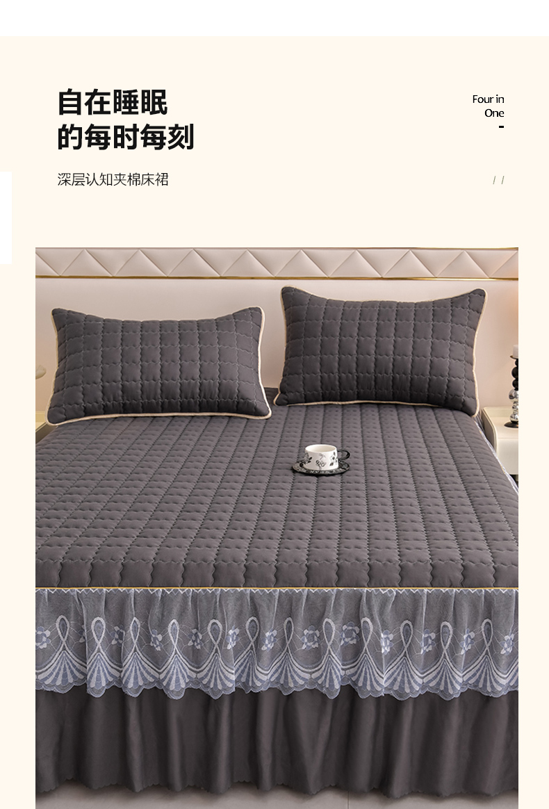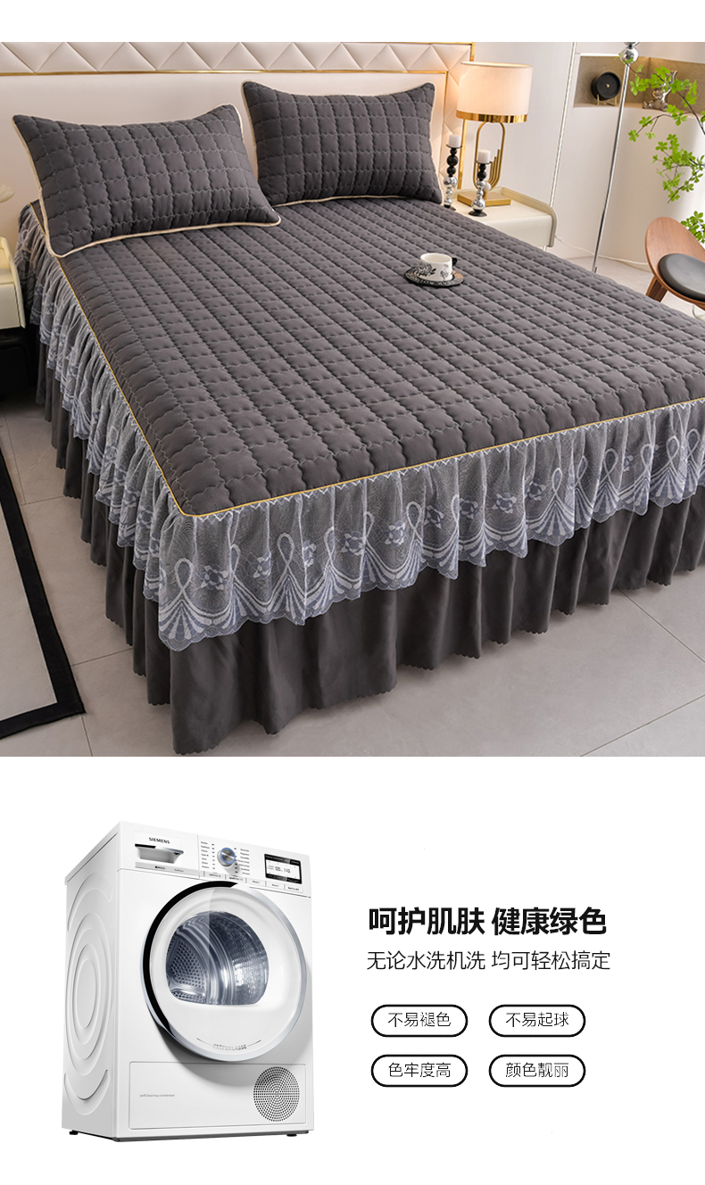 艾裙海 2025新款90克磨毛夹棉绗缝床裙 深灰色
