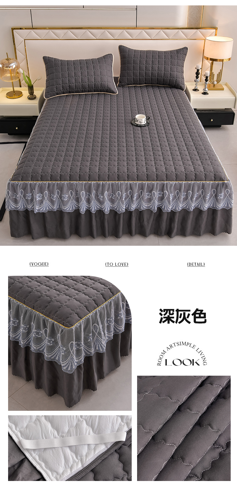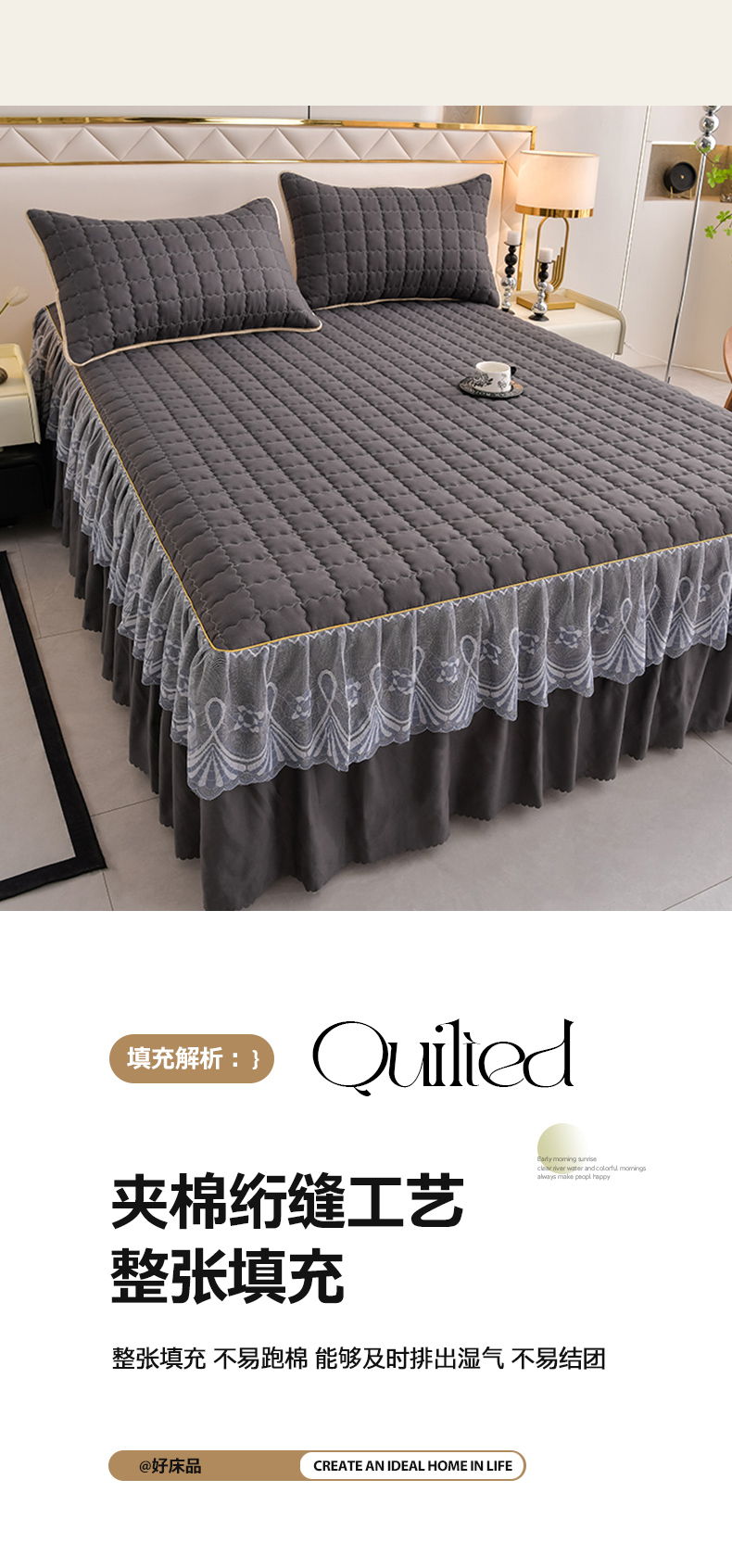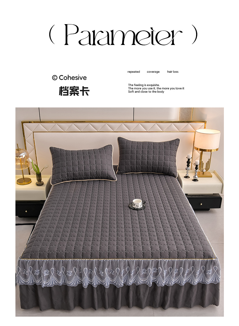 艾裙海 2025新款90克磨毛夹棉绗缝床裙 深灰色