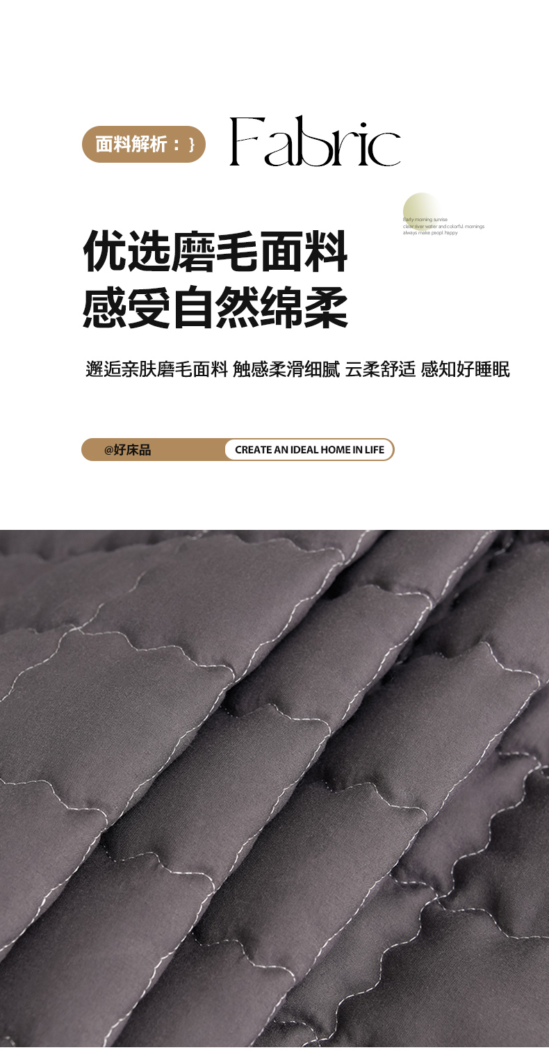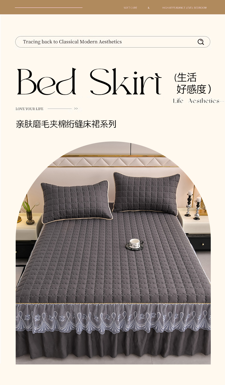 • 91家纺网 家纺一手货源 找家纺 艾裙海 2025新款90克磨毛夹棉绗缝床裙 深灰色