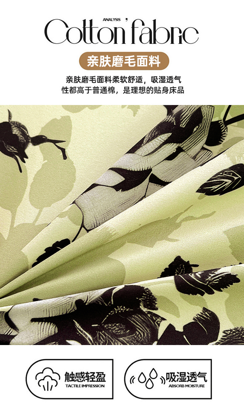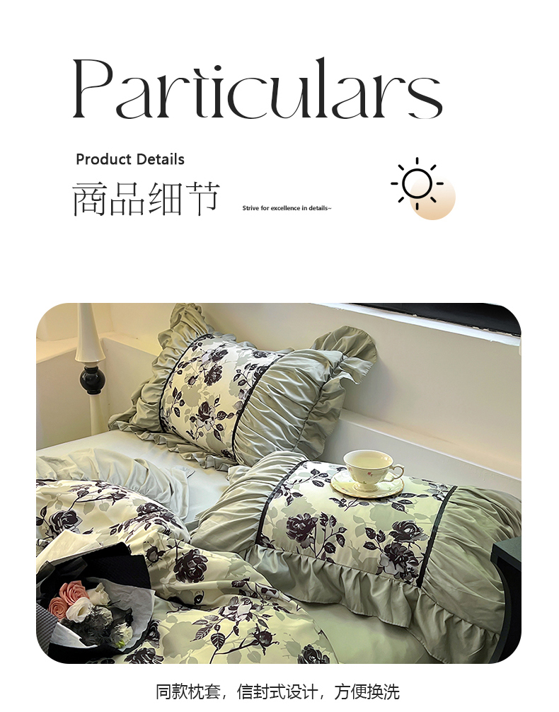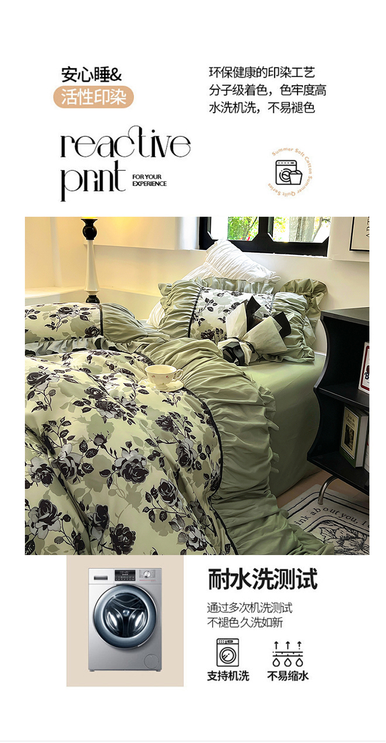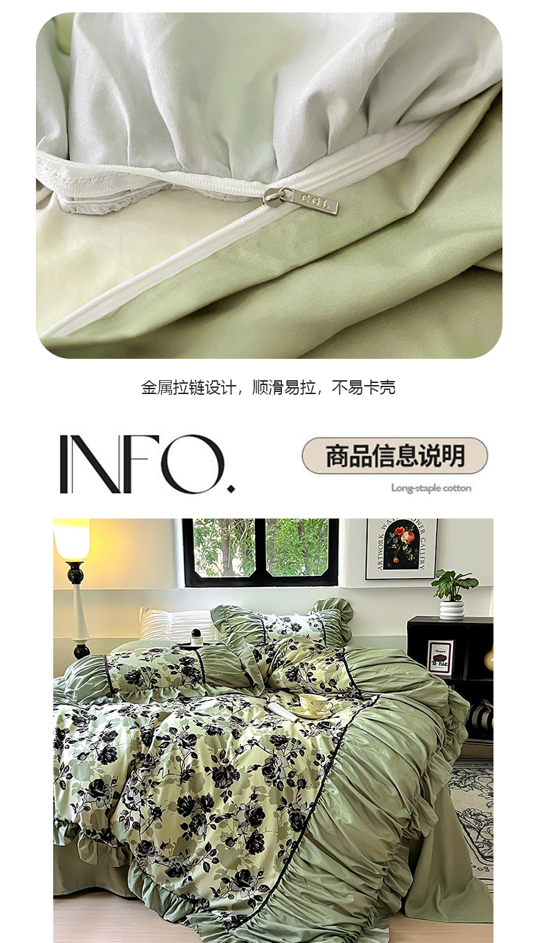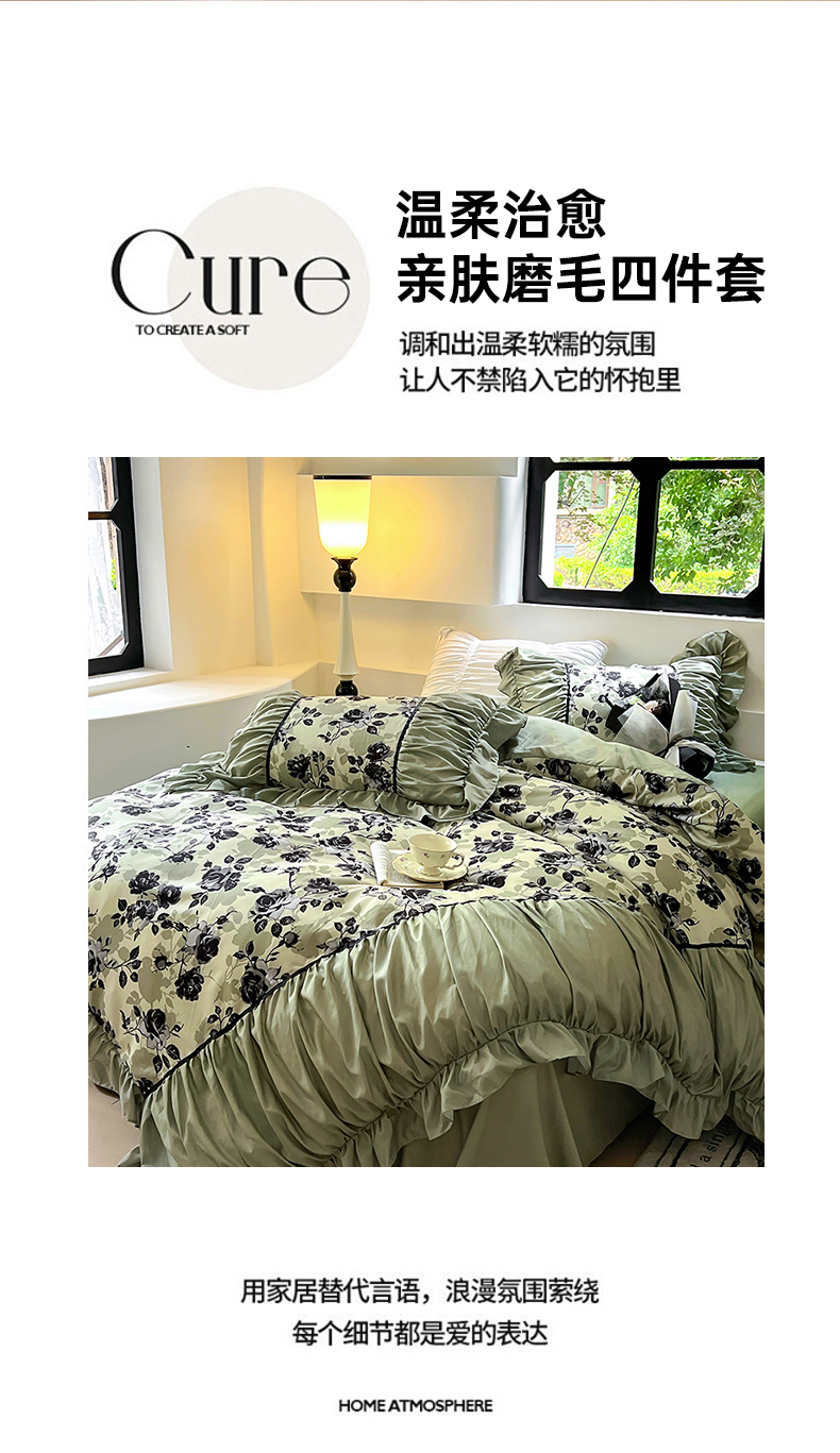商品名称:春光里 2024新款法式大花边亲肤磨毛四件套 庄园风华(绿)
